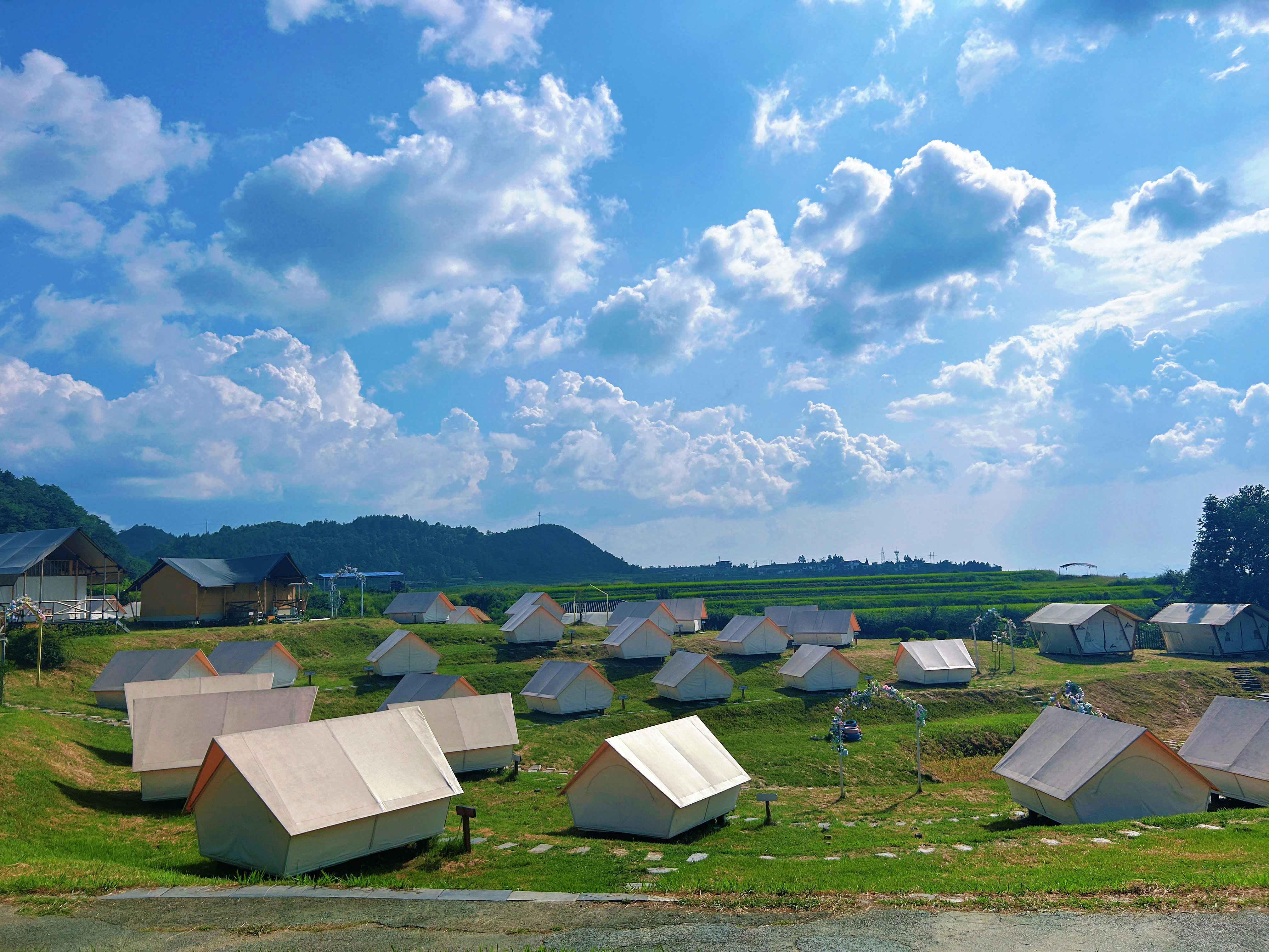 作为高坡扰绕景区的核心区域,露营基地以其独特的地理位置,隔绝了喧嚣,成为观云海、追日落、数星辰的绝佳秘境。基地配备了36顶白色帐篷、7栋野奢装配式酒店以及9间全景玻璃崖壁客房,让游客在这里享受清凉山风、观赏壮丽云海和璀璨星河。