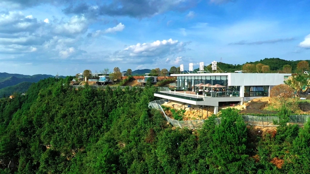 距离花海不远处,一家悬于海拔1400米崖壁的民宿引人注目,24座极具科技感的太空舱、10个野营帐篷和一块无界草坪,共同构成以“牧云、观星、揽山、对崖”为主题的新晋打卡地标——晚霞星宿,还配套云崖餐吧、野奢茶室、云崖无边观景台、星空营地,解锁山居生活的无限可能。