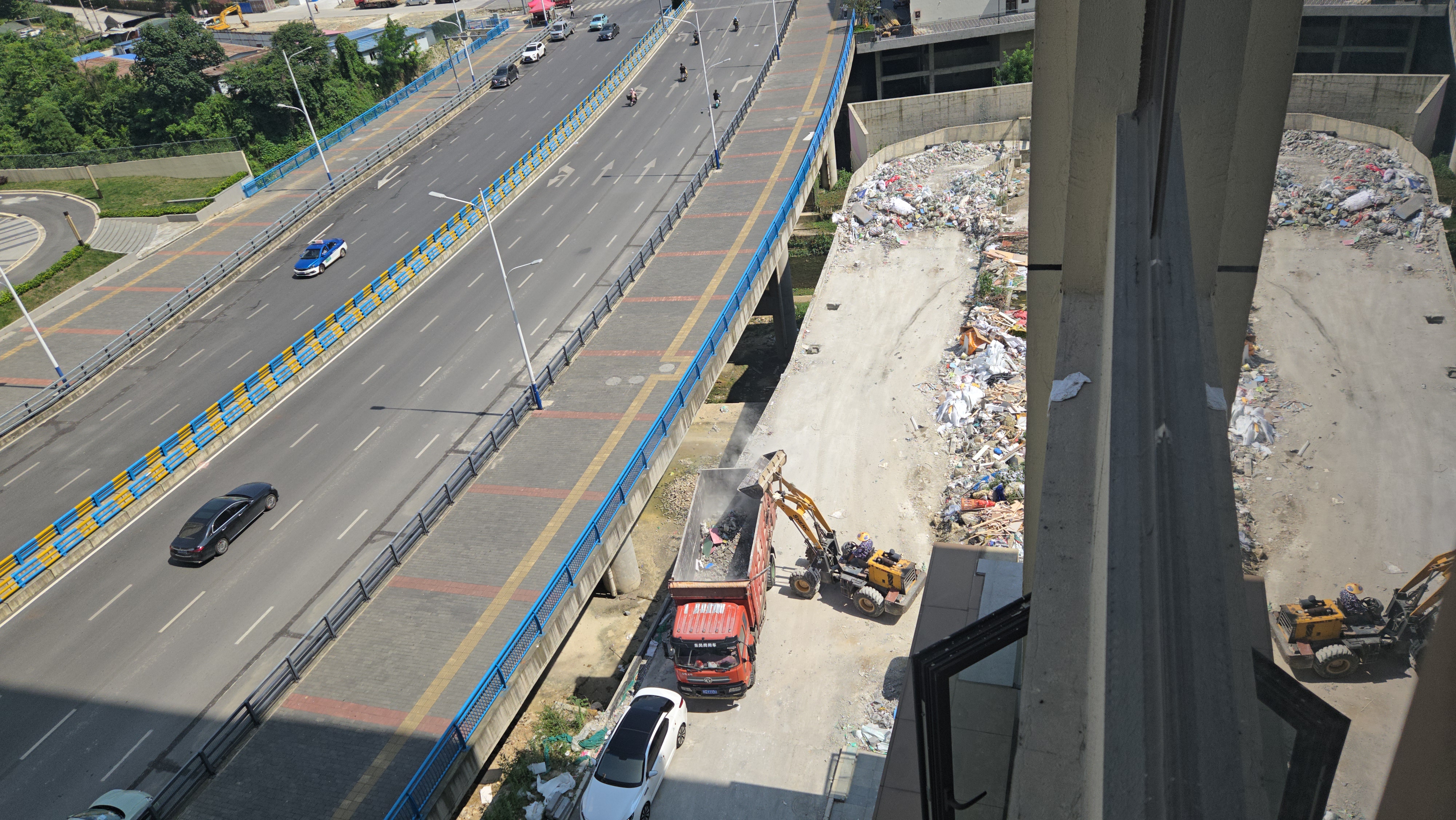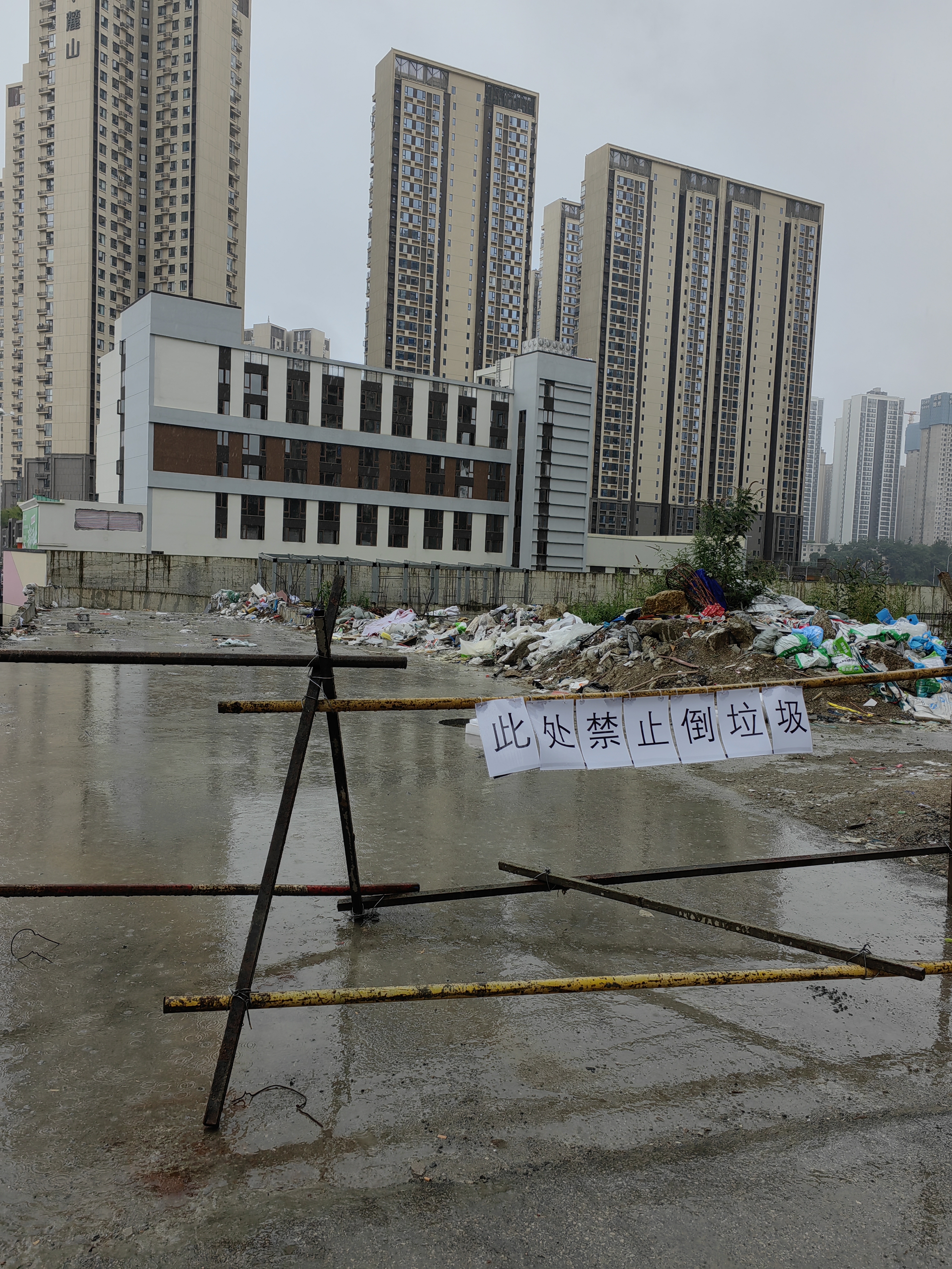 居民的困扰引起了马王街道办事处的重视。据该街道办垃圾分类专班负责人何安兰介绍,万科麓山B区于2024年5月交付6、7、8三栋住宅楼,当时为了方便业主装修清运建渣,小区物业把临时建渣池设在了B区外围的这片空地上。“2025年1月和3月,该小区5栋、9栋也陆续交付。随着越来越多的业主装修入住,车辆往来频繁,给8栋的居民带来了噪音和扬尘烦恼。”何安兰告诉工作组。