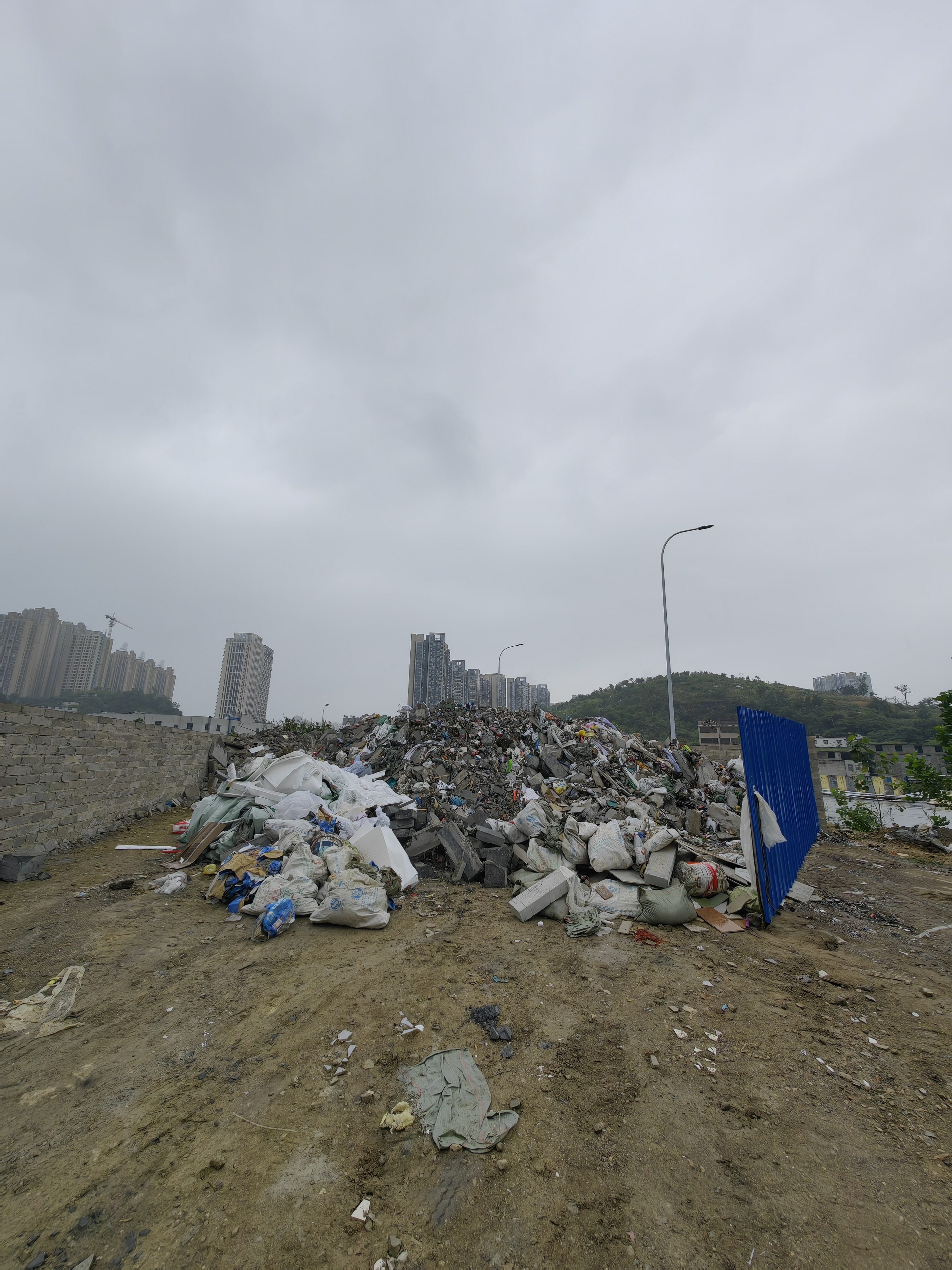 这片空地虽在小区外,但紧邻该区8栋的居民楼。“每天倒垃圾、运垃圾时,都有很大的噪音。即便我家不开窗,每天还是会落一层灰。”住在该栋低楼层的张先生告诉工作组,自2024年下半年搬到这里,这种情况就一直存在,他和邻居跟物业反映过多次,但问题始终没解决。张先生希望相关部门能找个更合适的地方处理小区建筑垃圾。