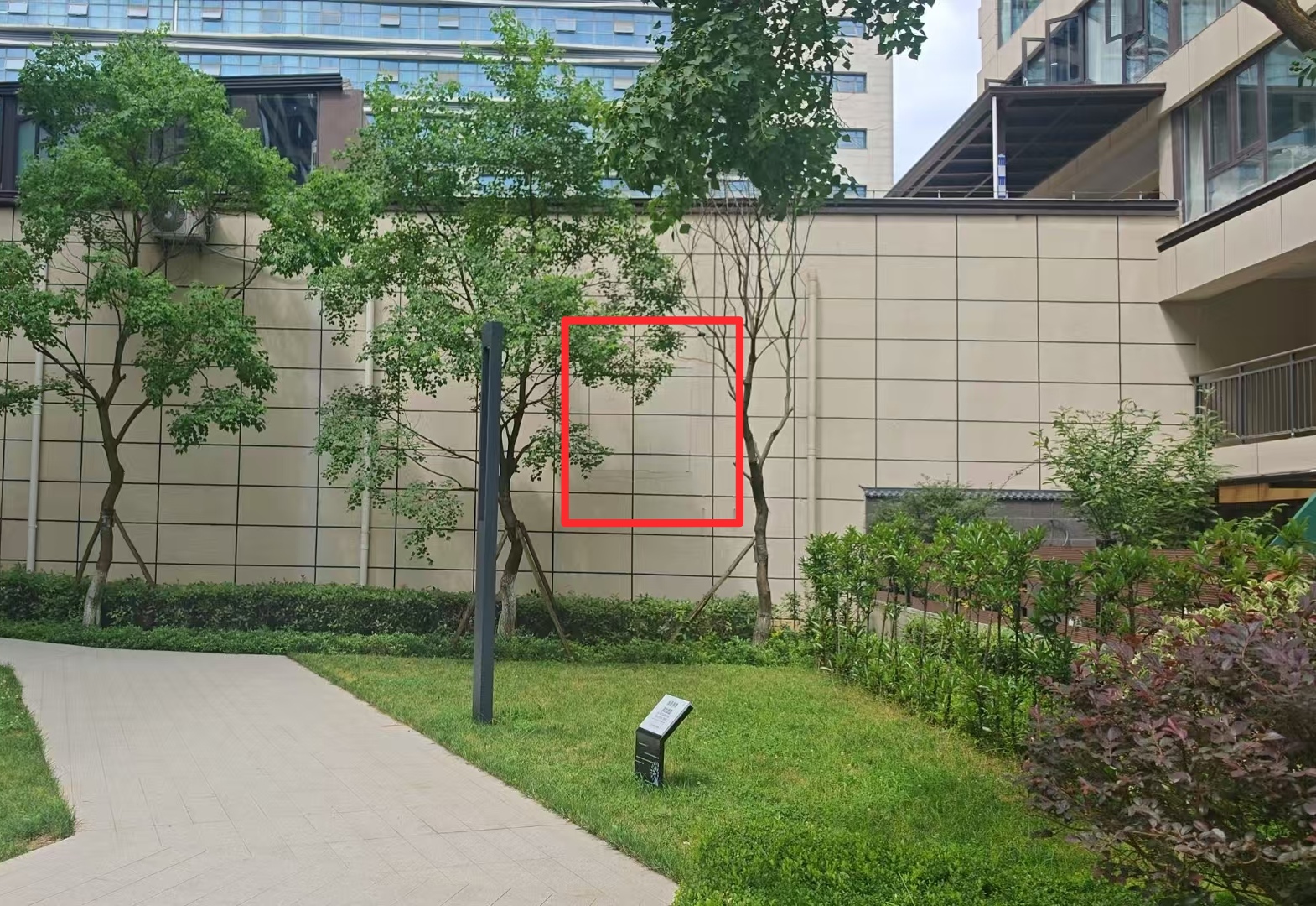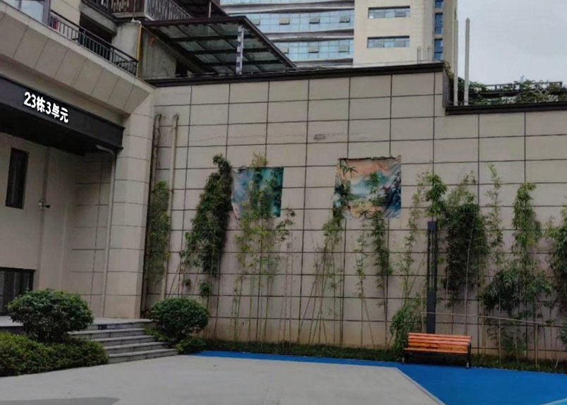 单元门口围墙上有两个开孔。