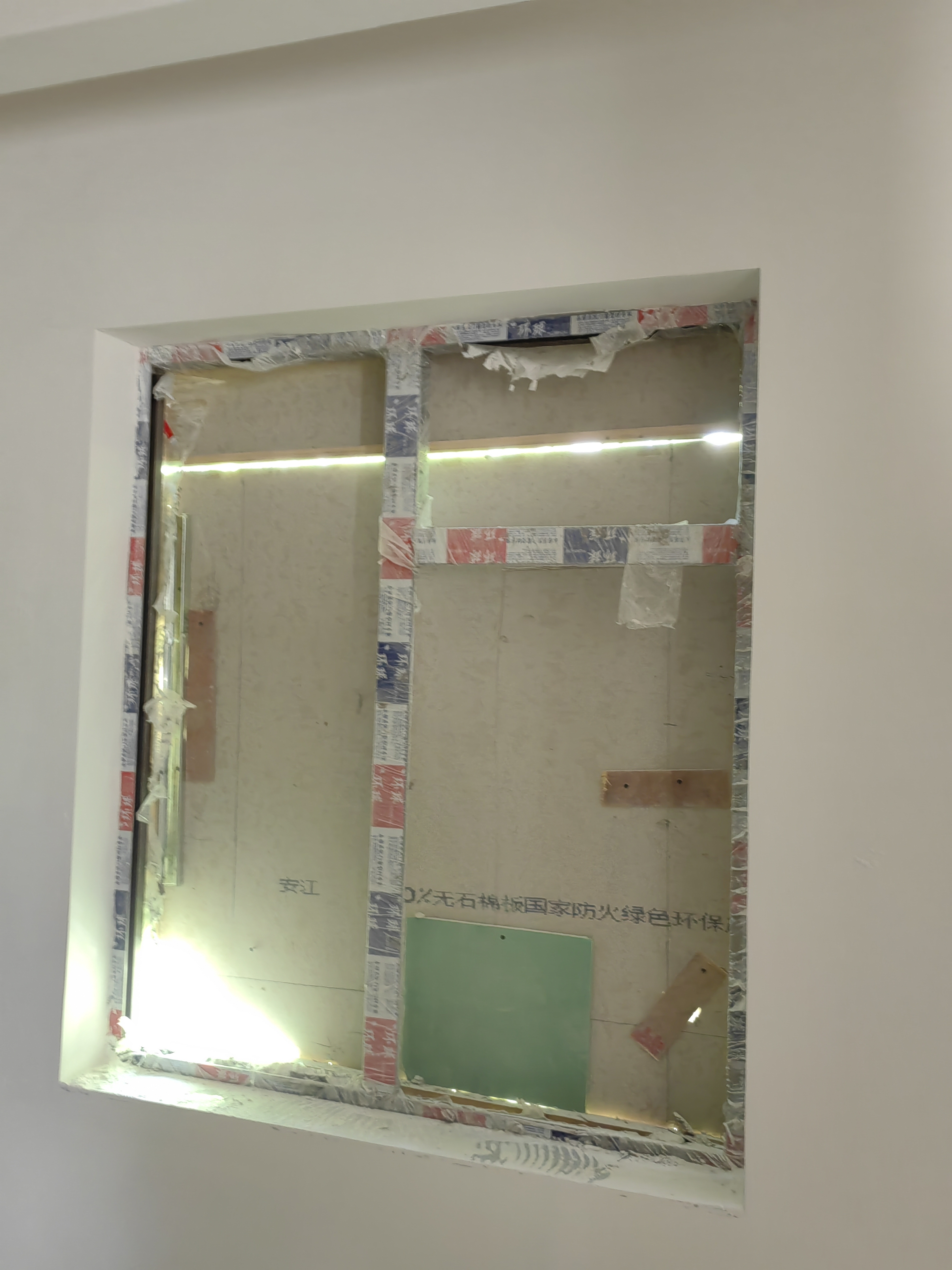 墙面被凿开,并安装窗框。