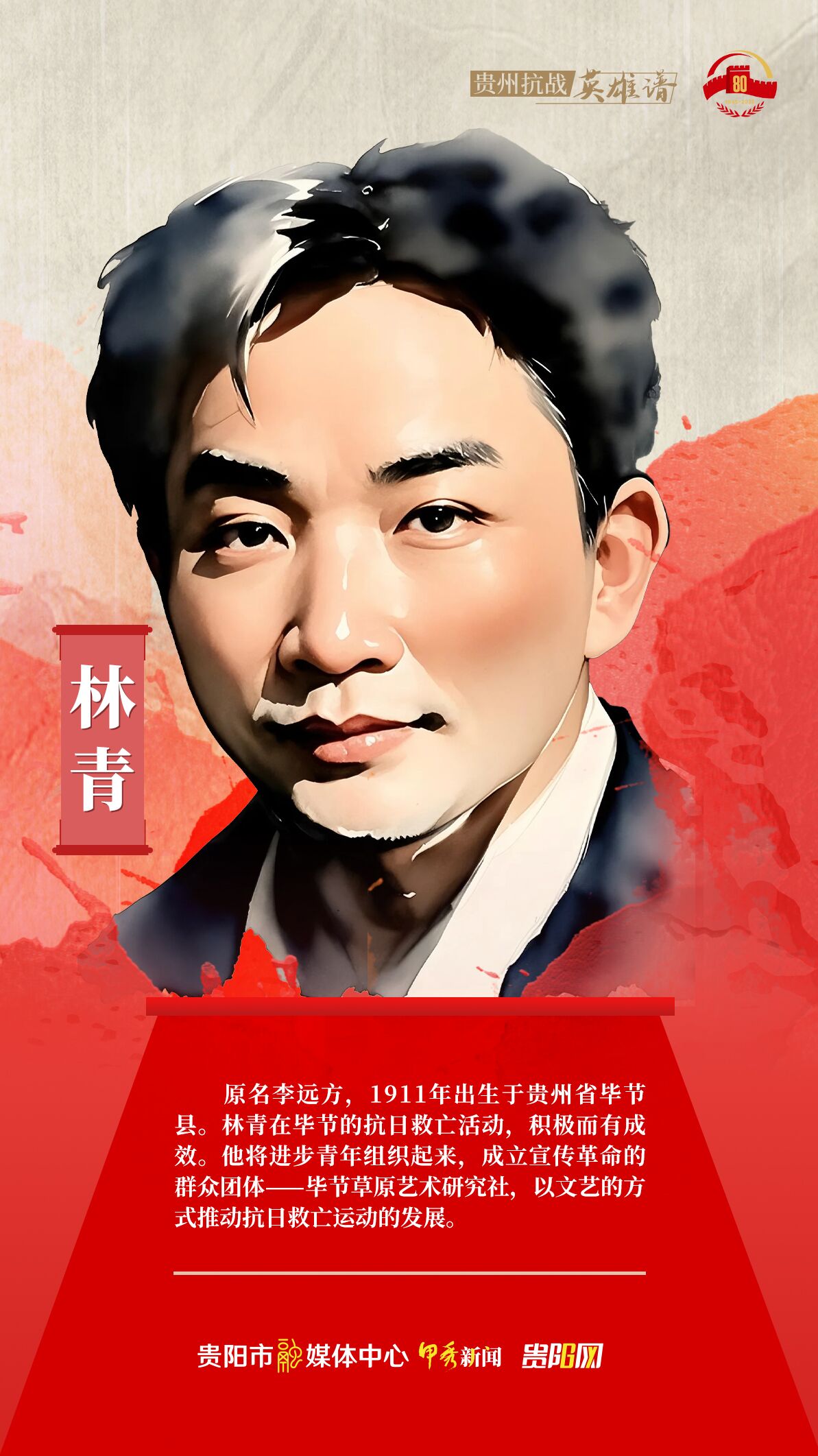 林青,原名李远方,又名李肃如,小名毛幺,曾用名矛戈,1911年出生在贵州省毕节县城一个贫民家庭。