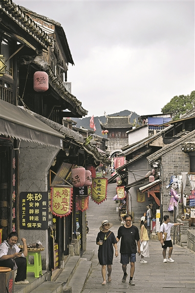 今夏,贵阳青岩古镇的宣传视频亮相天安门《辉煌的中国》主题展,在天安门东、西地铁站显示屏循环展播,展现80年前青岩古镇作为抗战大后方的坚守与荣光。
