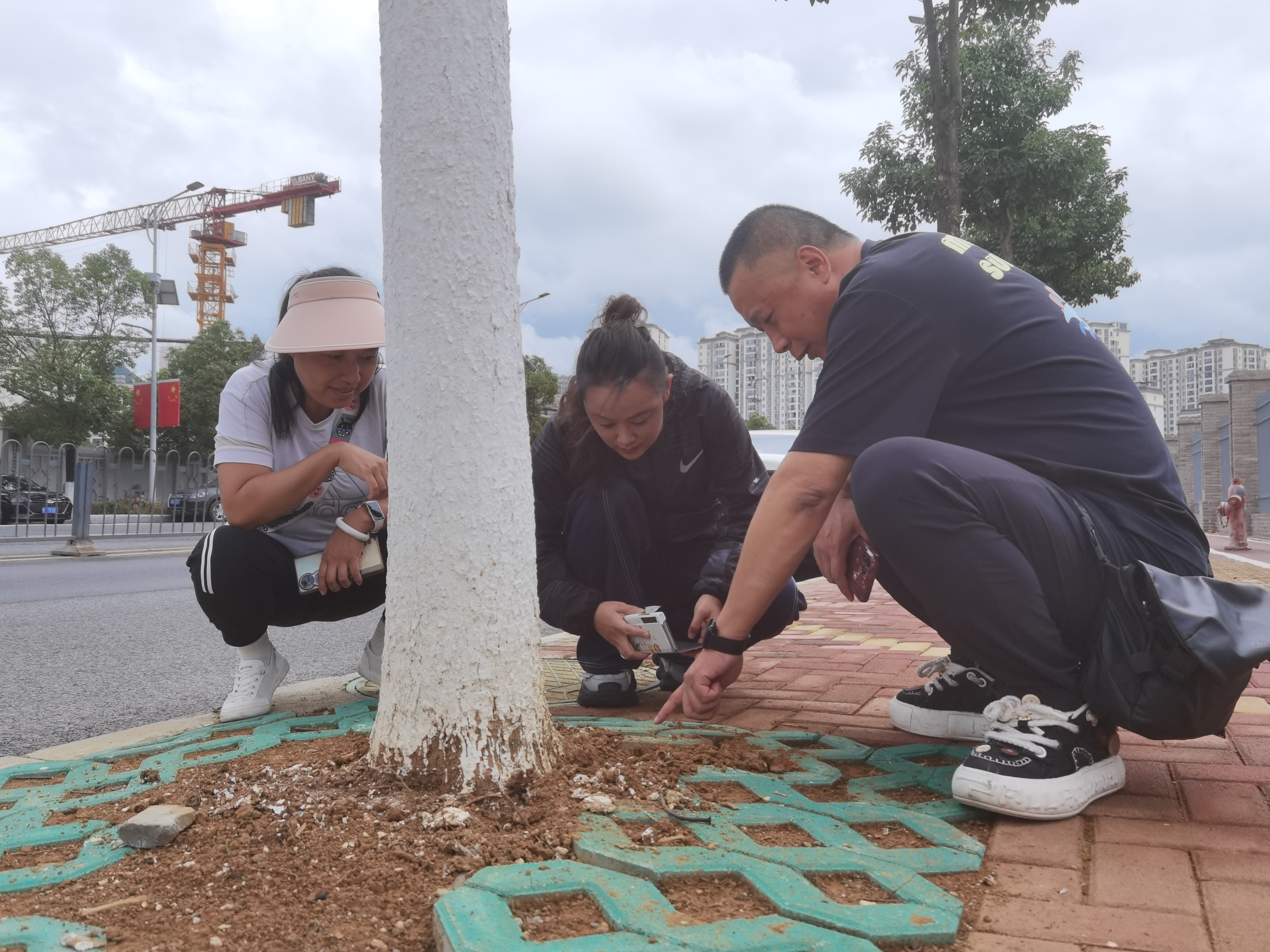 行道树旁发现红火蚁巢穴