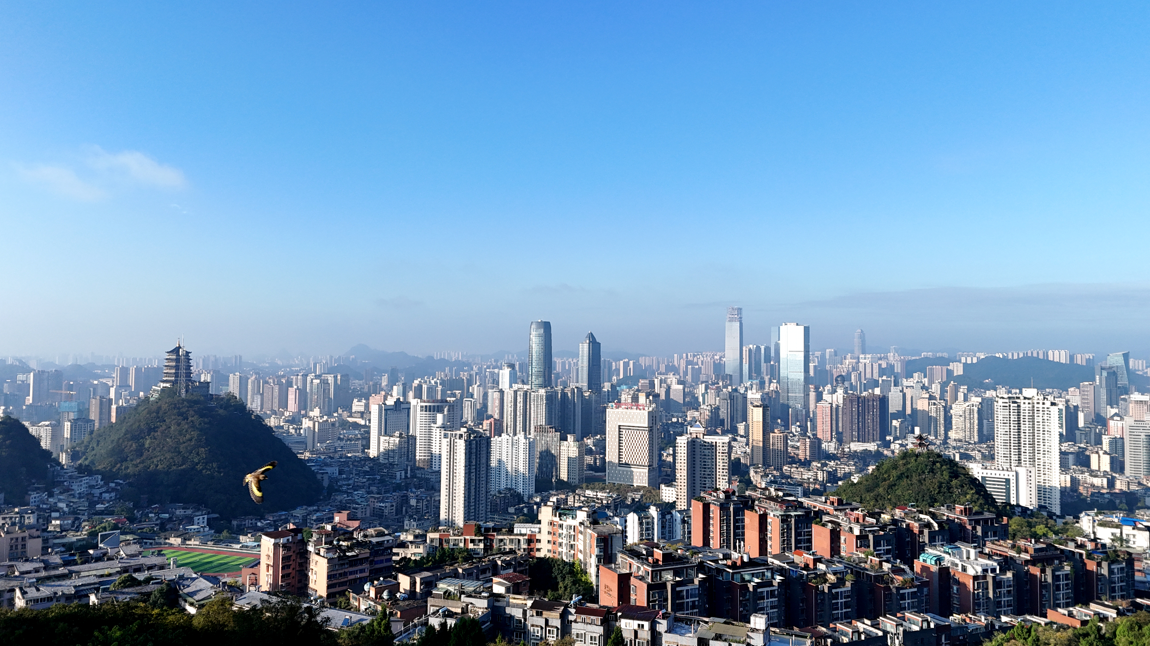 监测数据显示,截至14时,贵阳贵安219个气象监测站中,最高气温达到或超过20℃的站点有75个,最高气温28.7℃出现在修文县六屯镇大寨,这也是10月18日冷空气全面影响贵阳以来整体气温最高的一天。图为今日贵阳市区蓝天白云,气温非常舒适。