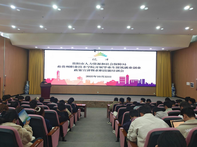 为深入实施人才兴市战略,吸引更多高校毕业生留筑就业创业,近日,贵阳市人力资源和社会保障局牵头组织市住建局、市公安局、市人才集团等单位,于2025年10月22日、24日分别走进贵州职业技术学院和贵州师范学院,成功举办留筑就业创业政策宣讲暨求职技能培训活动。