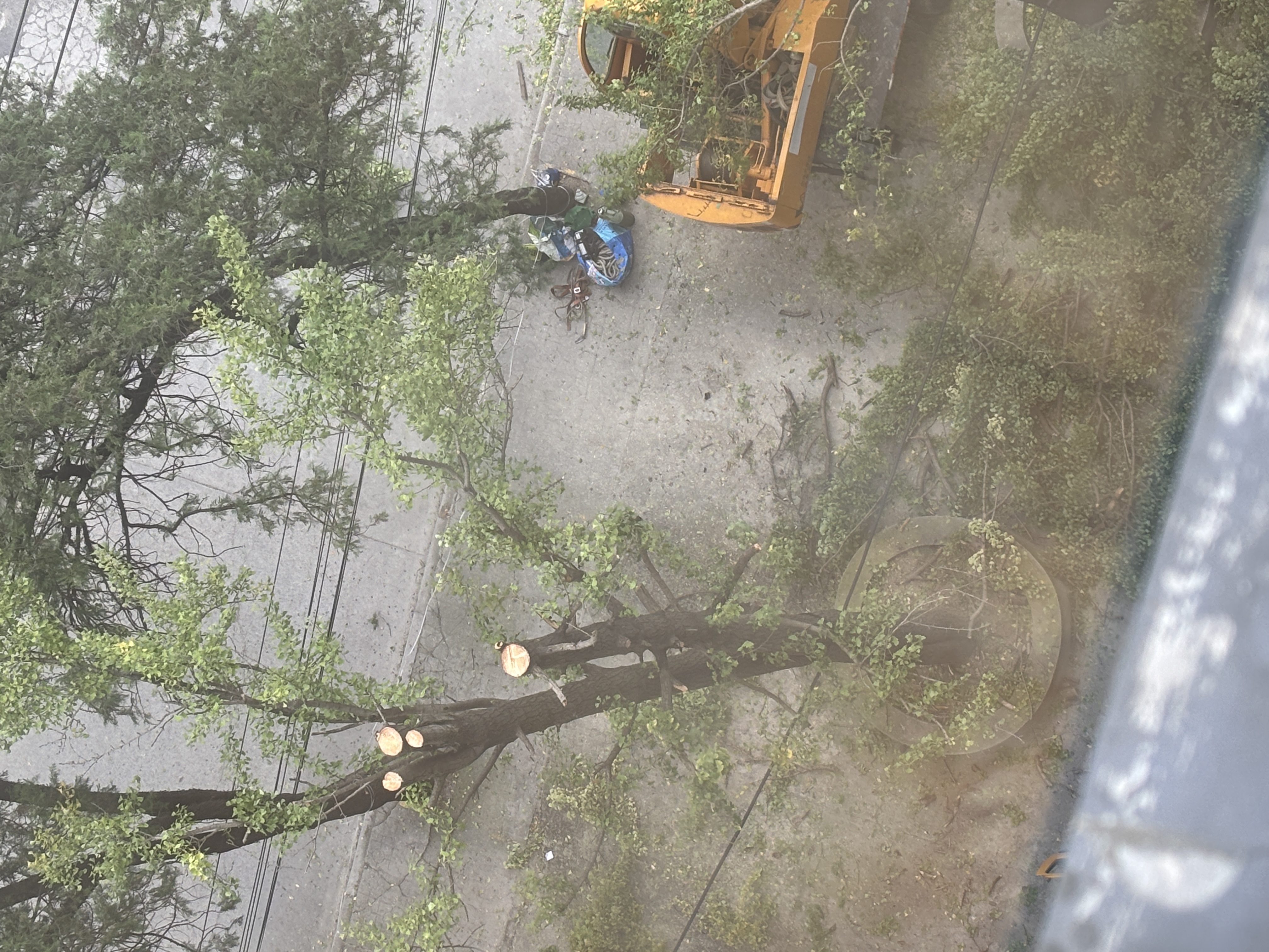 市民提供,作业公司修剪小区内多棵银杏
