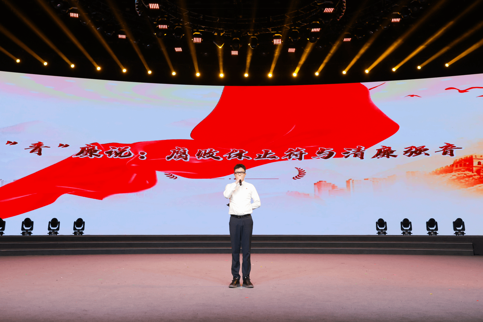 决赛现场,我行参赛选手精神抖擞、从容展现,以多元形式诠释廉洁内涵。其中,总行营业部微课程《“青”廉说:腐败休止符与清廉强音》作品中,凭借守正创新的表达形式与直击人心的思想内核,以总分第2名的好成绩斩获决赛一等奖。宣讲人郭智健创新廉洁教育宣讲形式,以节奏明快的Rap说唱旋律为载体,通过“诱惑与坚守”的对话式唱词,生动呈现年轻干部在权力、利益与纪律面前的抉择考验,将“扣好廉洁从业第一粒扣子”的深刻内涵、党纪法规的刚性要求融入朗朗上口的唱词中,既揭示了“一顿饭、一张卡、一次破例”等微腐败的溃堤风险,又传递了金融青年“心有所谓、言有所戒、行有所止”的坚定信念,以年轻化、潮流化的表达打破传统廉洁理念入脑入心。