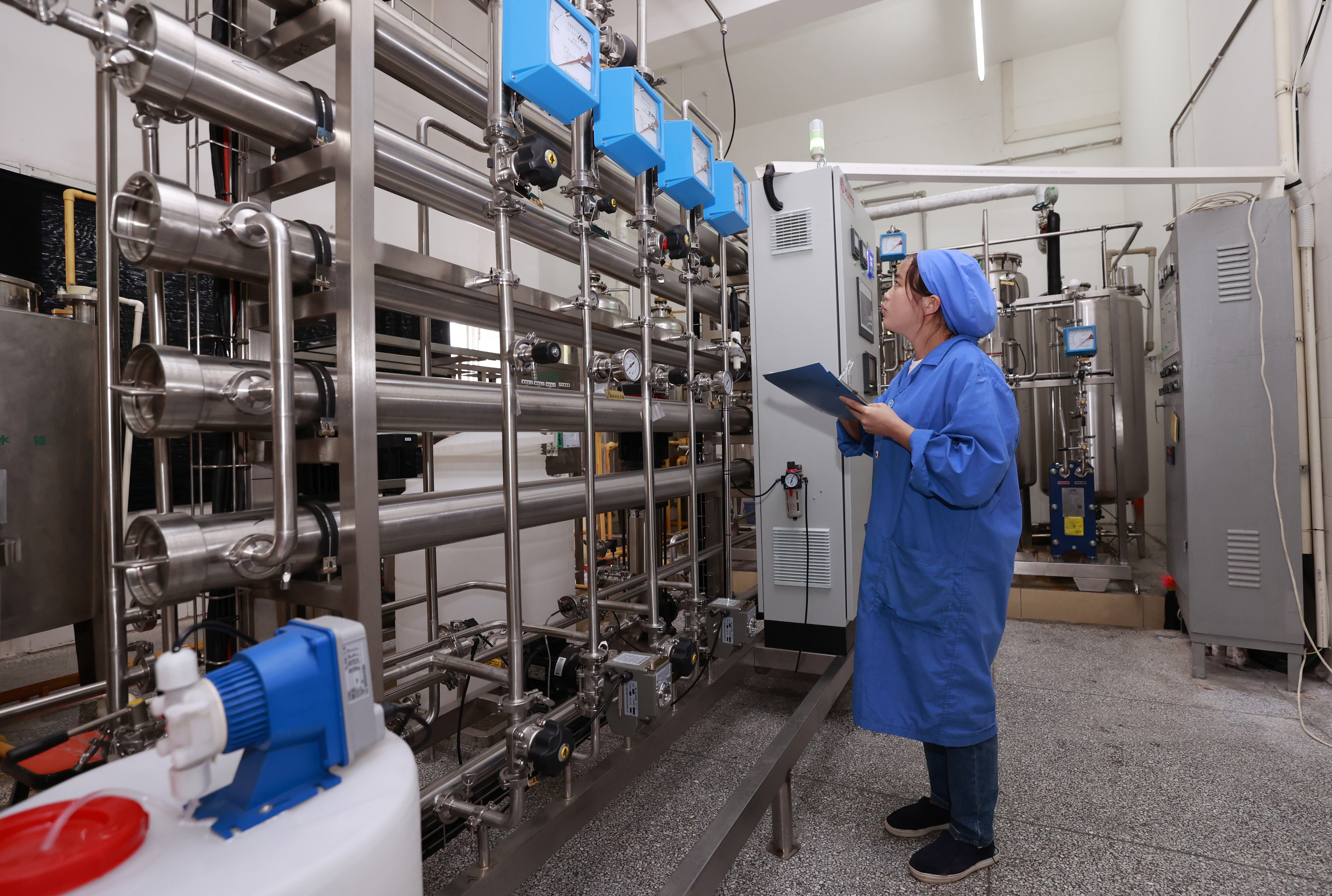 贵州万顺堂药业有限公司工作人员在记录生成线仪器工作数据