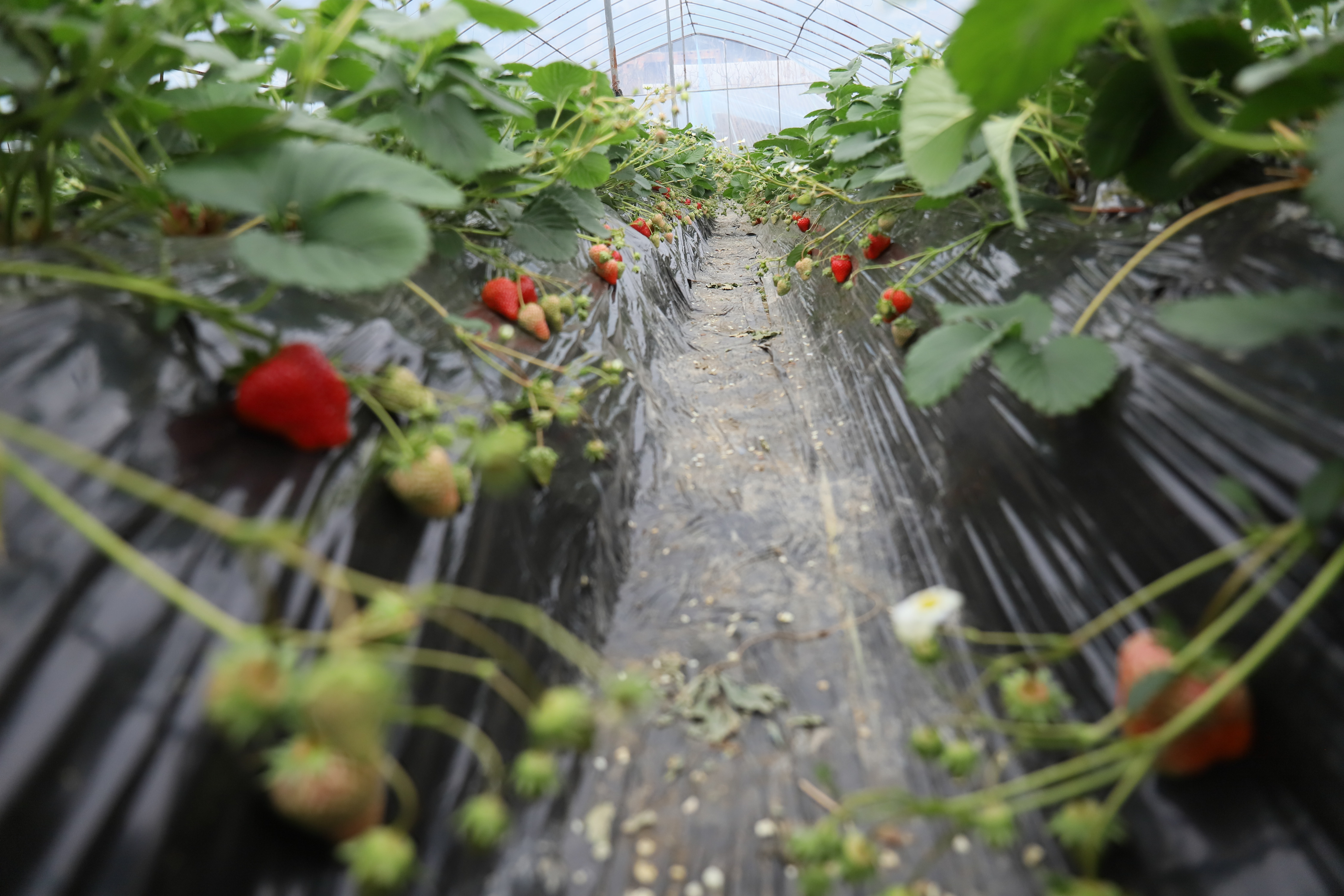 乌当区下坝镇谷定村丰收生态草莓采摘园里的巧克力草莓
