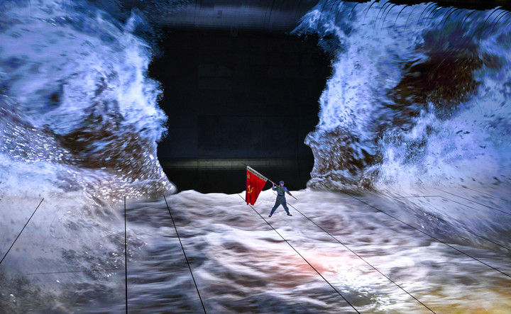 2025年11月15日,演员在贵州长征文化数字艺术馆进行《红飘带·伟大远征》全域行浸数字演艺。