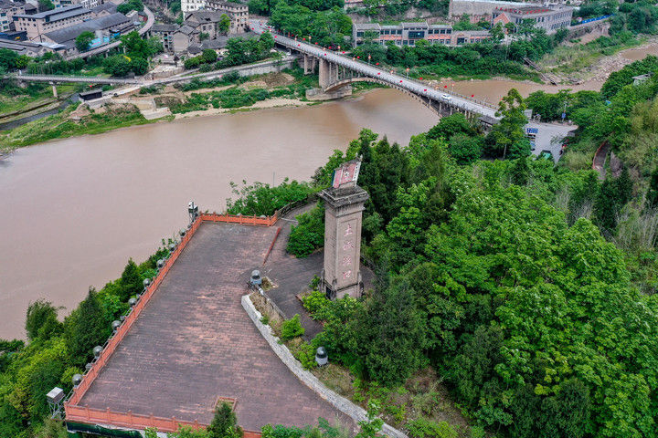 位于赤水河畔的贵州省遵义市习水县土城镇,是赤水河中游的重要码头,同时也被称作“躺在纪念馆上的红色小镇”。1935年,中央红军在土城一渡赤水河,拉开了四渡赤水战役的序幕。这是2021年4月21日拍摄的土城渡口纪念碑(无人机照片) 。