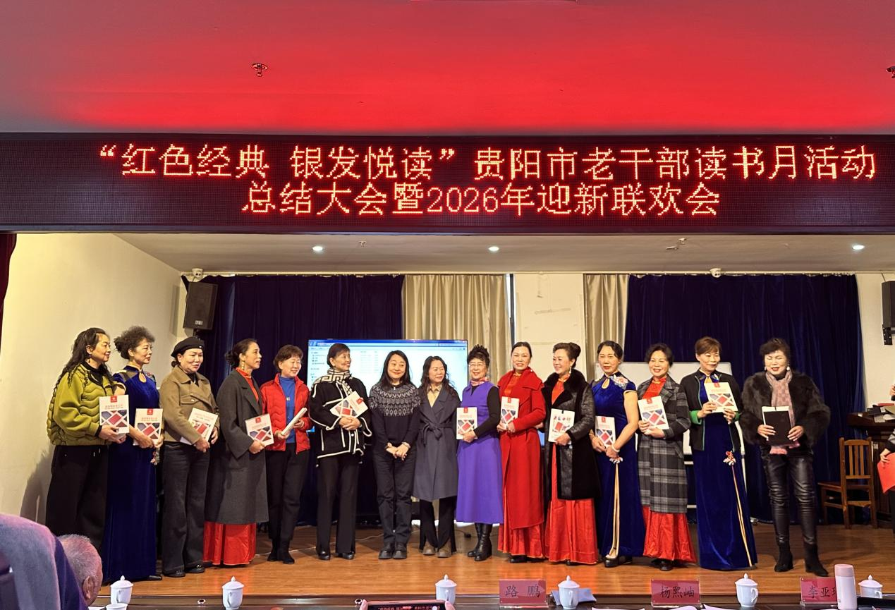 贵阳网·贵阳新闻讯 12月17日,贵阳市老干部活动服务中心内欢声笑语,“红色经典银发悦读”读书月活动总结大会暨2026年迎新联欢会在此举行。贵阳市委老干部局、市委党史研究室相关同志,市委老干部局离退休党支部成员、活动中心团队老同志等共同参加。