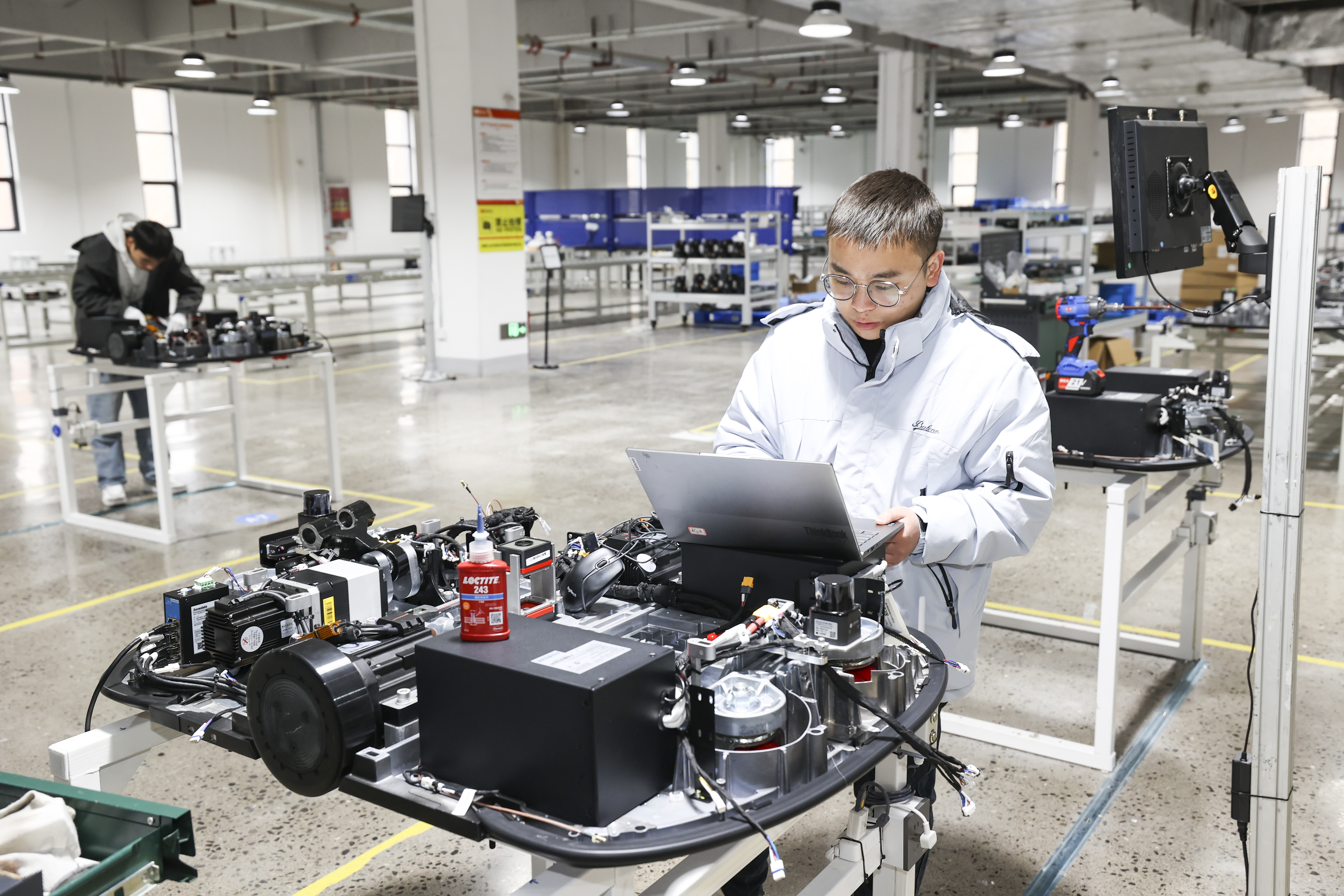 技术员在车间里安装忙碌