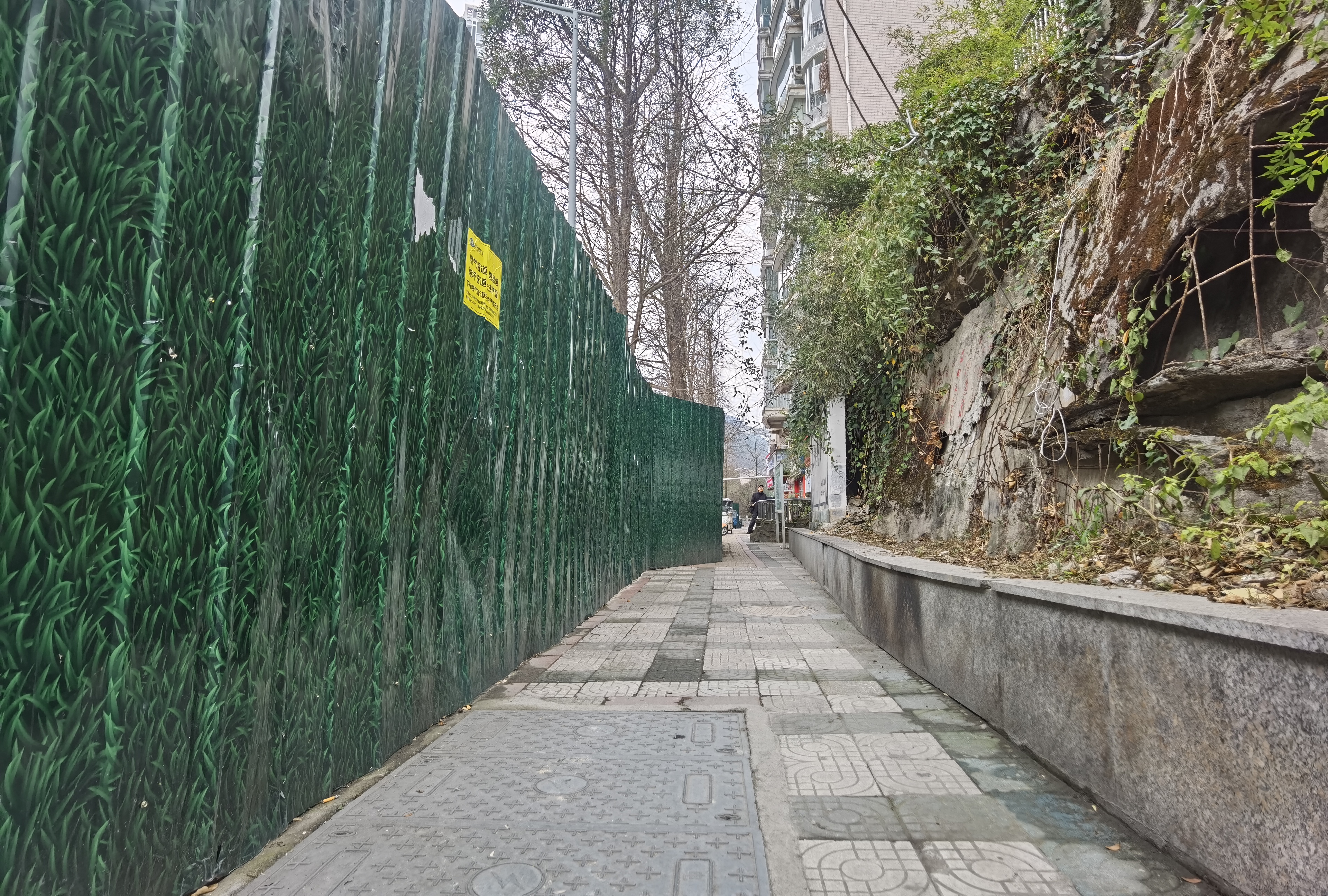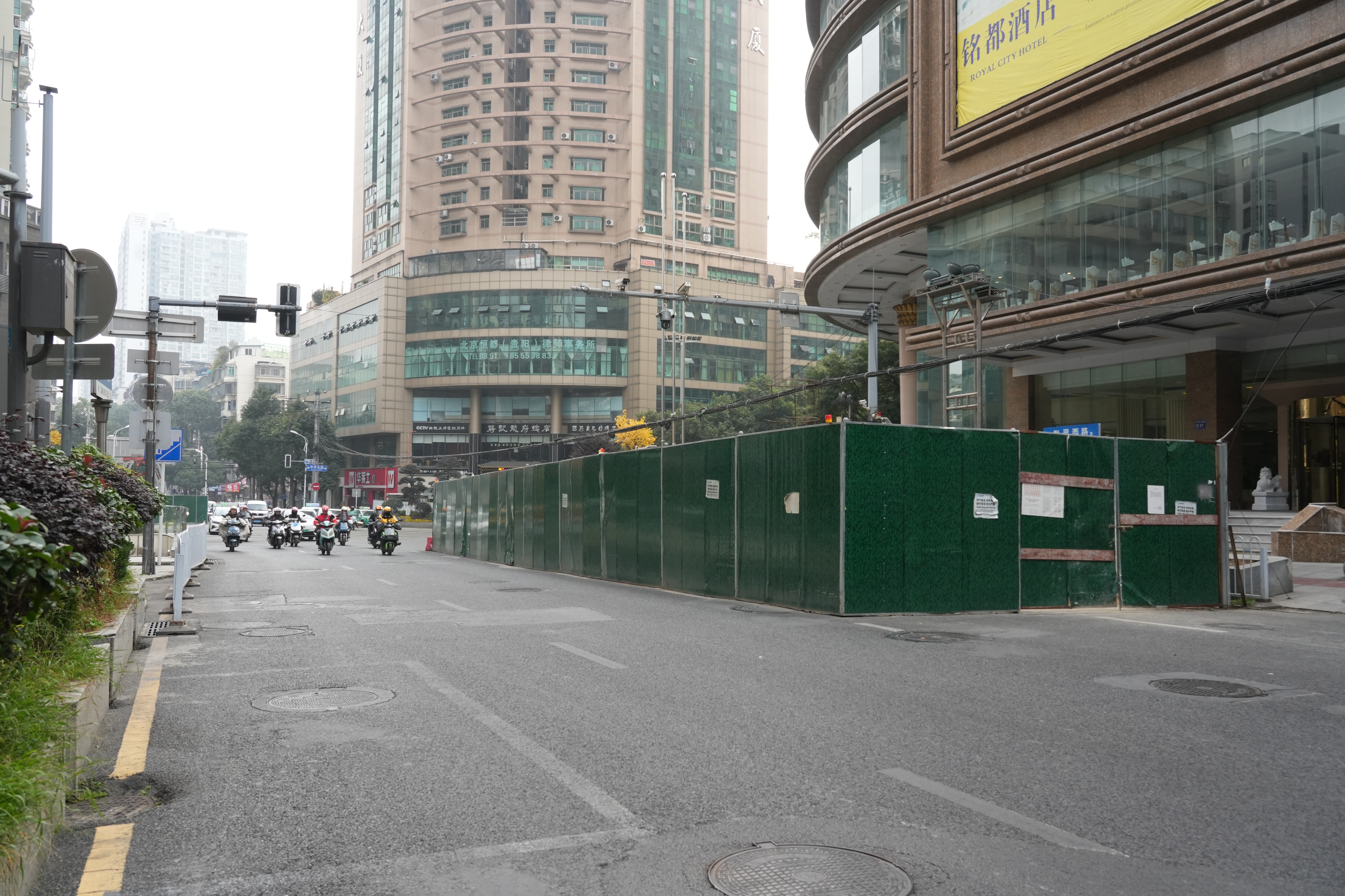 “超期”围挡并非个别现象,黔春路上也存在类似问题。“马路被占了两三年,而且已经停工很长时间。”周边商户赵女士表示,围挡不仅造堵,还影响行车视线。马凤萍代表现场走访发现,黔春路为双向四车道,在该道路与头桥路交叉口路段,有两处围挡相距约30米。两处围挡各有20米长,占用了一条车道和部分人行道、盲道,围挡内停有多台施工机器,部分路面已被开凿。
