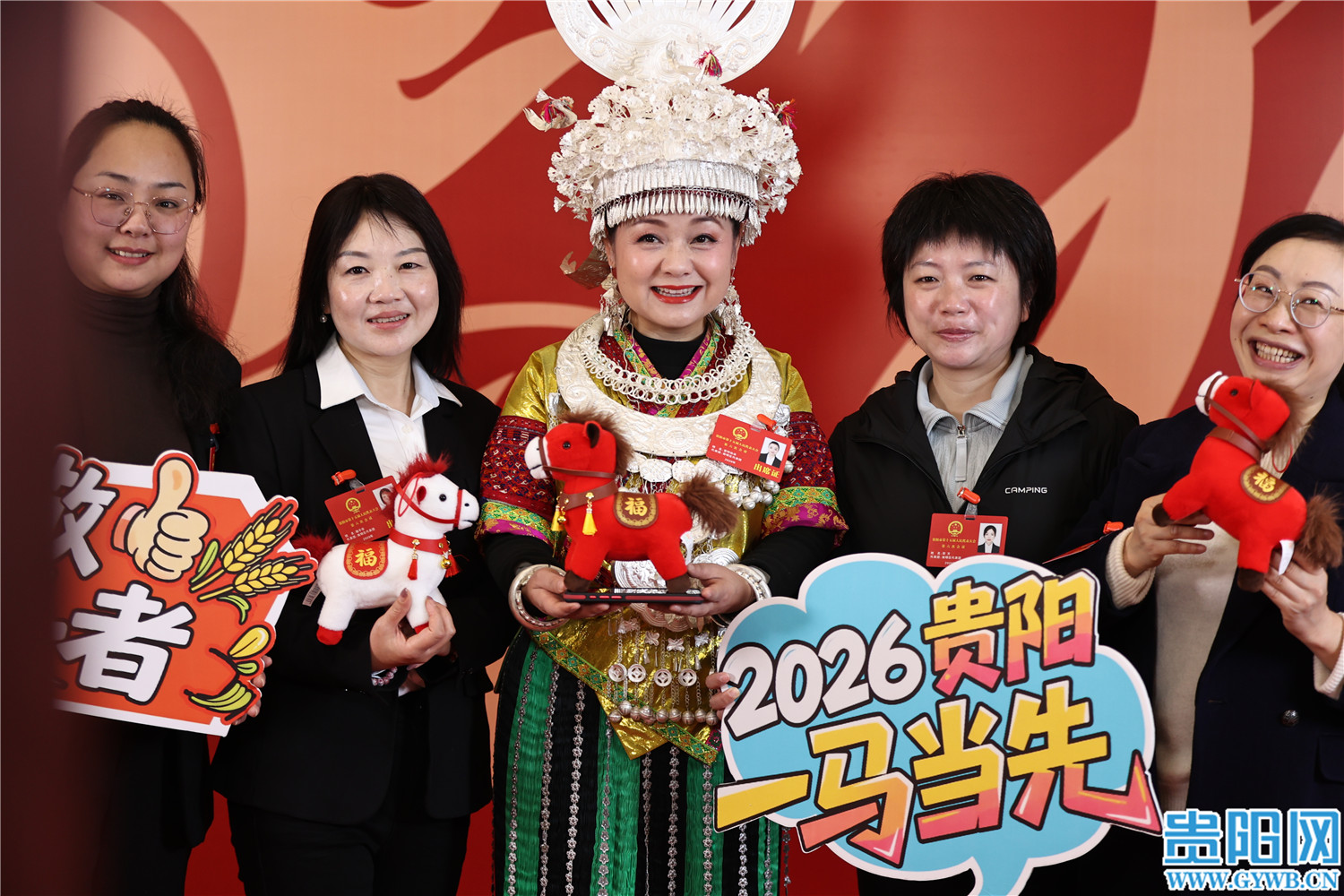 贵阳网·贵阳新闻讯 1月18日至19日,2026年贵阳市两会期间,贵阳市融媒体中心设立的“两会照相馆”前排起长队,代表委员们纷纷打卡留念,共同祝福贵阳在新的一年里“一马当先”。