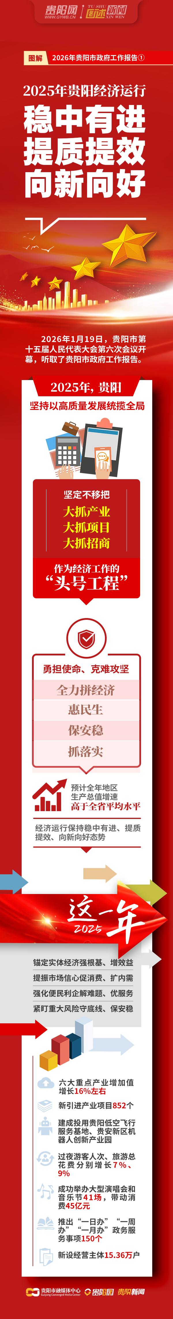 【图解2026年贵阳市政府工作报告①】2025年贵阳经济运行稳中有进、提质提效、向新向好