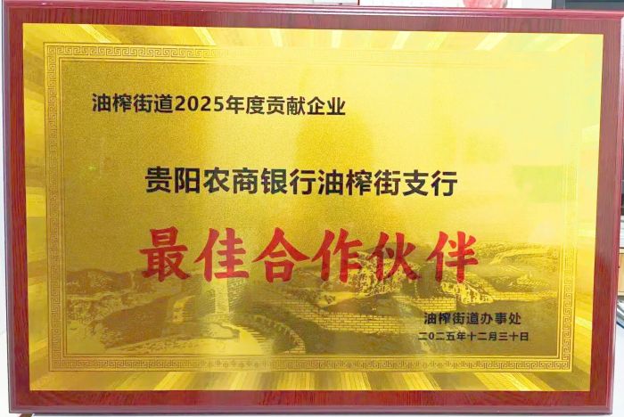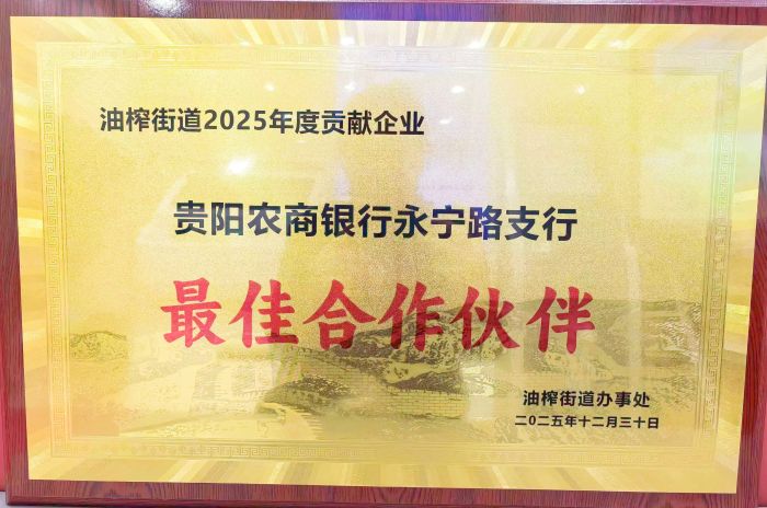 近日,贵阳市南明区油榨街道2025年度“贡献企业最佳合作伙伴”评选结果揭晓,贵阳农商银行油榨街支行与永宁路支行双双入选。