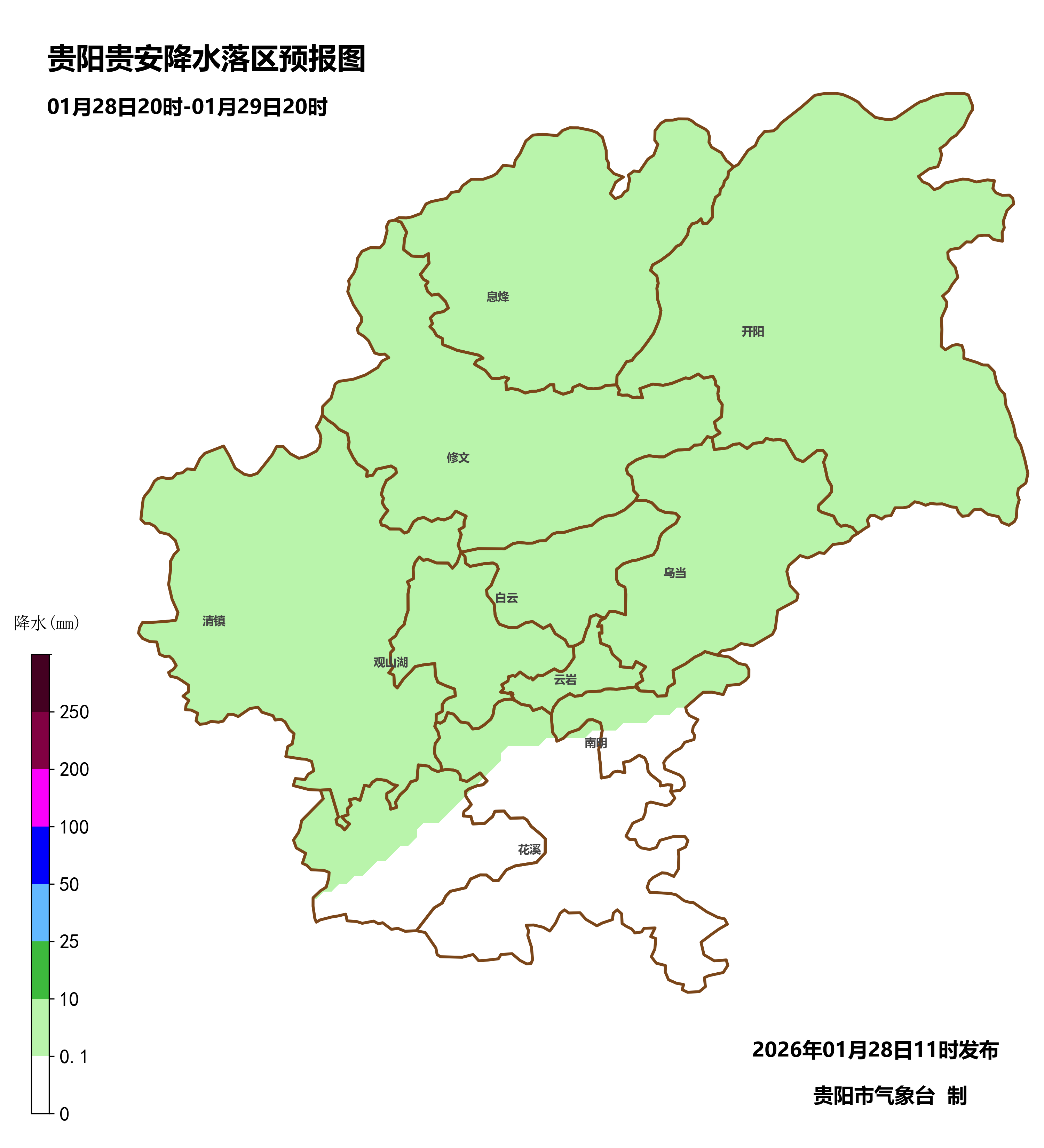2026年1月28日夜间到29日白天,阴天间多云有零星小雨,29日白天局地有4-6级偏南风,气温:7~15℃