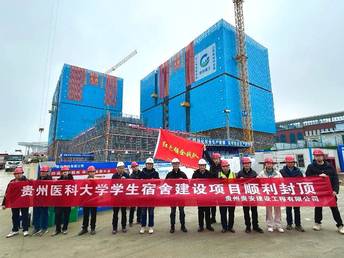 1月26日,由贵安发展集团旗下贵州贵安建设工程有限公司(下称“贵安建工”)承建的贵州医科大学学生宿舍项目顺利完成主体结构封顶,较原定2月5日的封顶工期提前10天达成建设目标,标志着该重点民生工程取得阶段性重大胜利,为确保2026年9月新生顺利入住筑牢坚实基础。