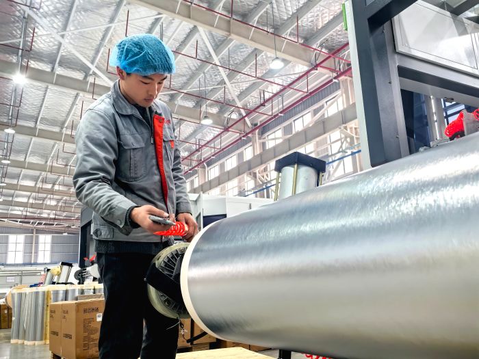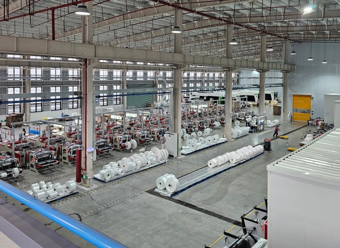 “现在我们实行三班倒,24小时不停机赶订单,日均产量900箱,最高可突破1000箱,车间里一刻都闲不下来。”负责无纺布制造机运维的机员杨中广,言语间满是生产一线的干劲与自豪。