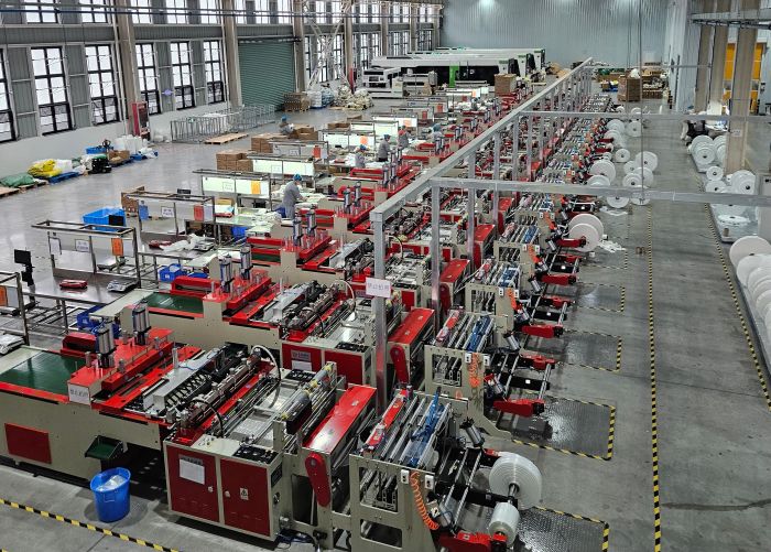 车间内,自动化生产线高效运转,十几名工人在各自岗位上专注工作,生物可降解塑料袋、无纺布保温袋等产品经严格质检、规范打包后,将发往全国各地,成为企业产销两旺的生动写照。
