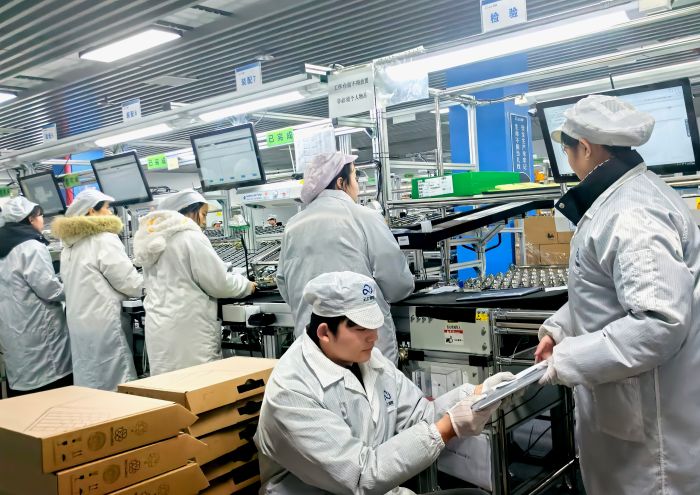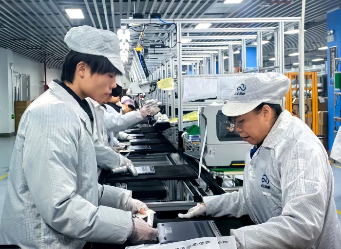 便携式终端的量产落地,是云上鲲鹏精准对接市场需求、实现产能突破的重要标志之一,而最新产能与市场布局数据,更彰显着企业的发展底气。“2025年12月初,我们启动了产线升级改造,仅一个多月就实现正式量产,目前我们落地2条硬件制造产线,满负荷状态下服务器日产能200台、PC日产能600台,折算成年产能,服务器可达8万台、PC可达20万台。”云上鲲鹏生产总监邓顺辉介绍,本期“兆瀚”笔记本订单超1万台,企业正开足马力赶工,确保春节前全部交付到位。
