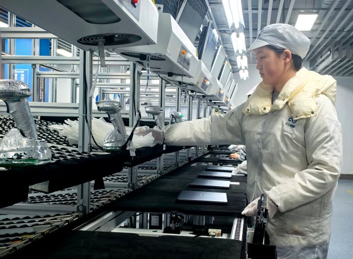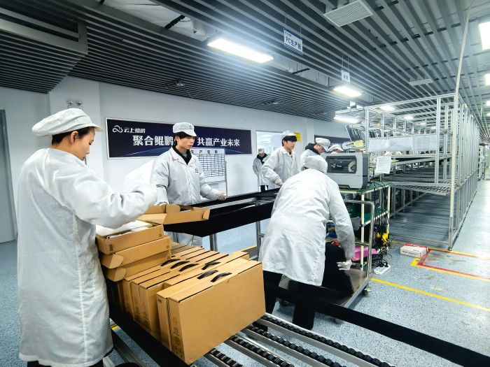 2月3日,贵安新区龙山工业园贵州云上鲲鹏科技有限公司(简称“云上鲲鹏”)生产基地内,两条硬件制造产线火力全开、满负荷运转。一台台“兆瀚”品牌笔记本电脑经严格质检、封装后,分批发往全国各地,全力冲刺春节前1万余台订单交付。