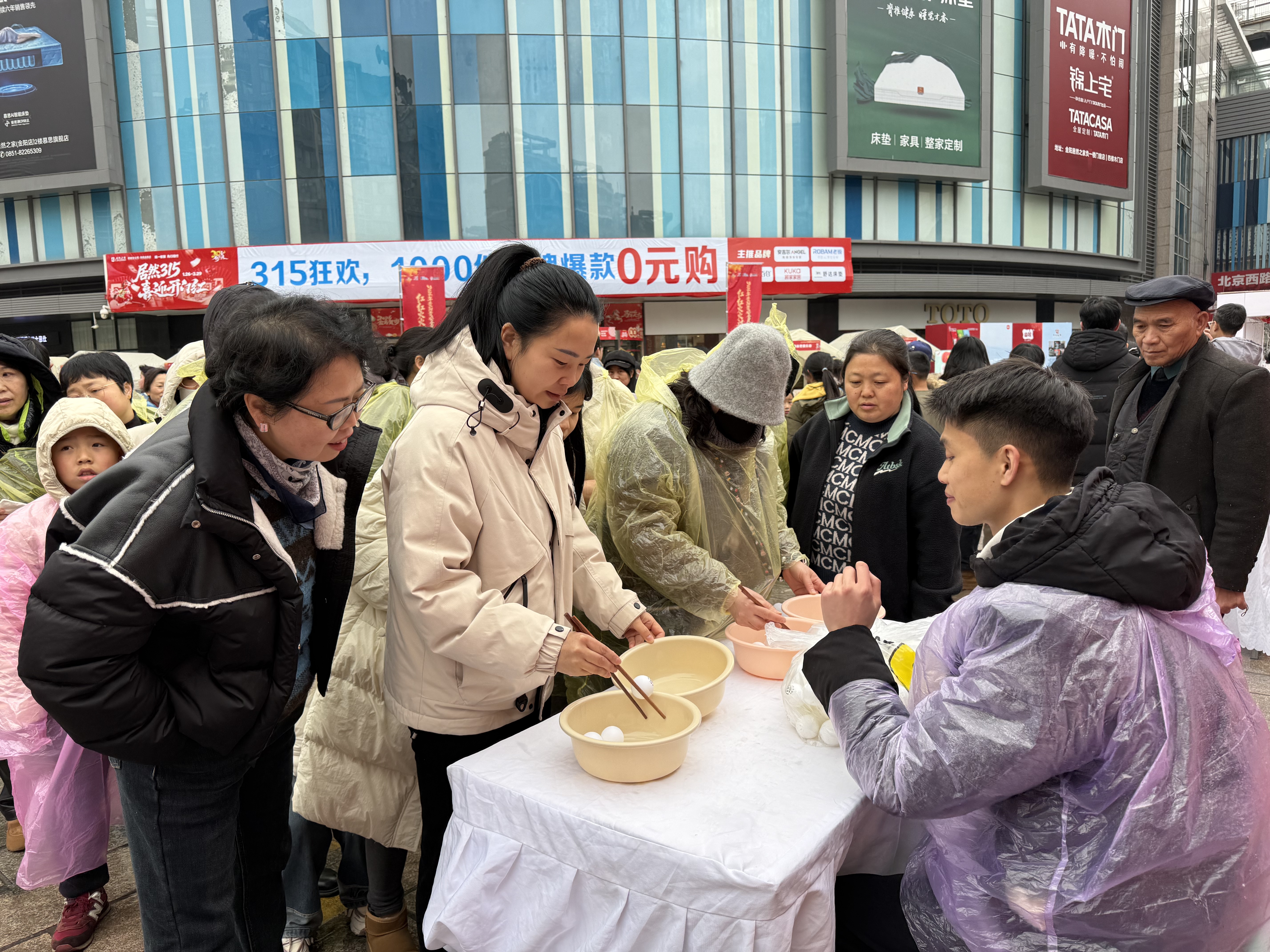 30秒跳绳挑战中,孩子们雀跃、年轻人迅捷、阿姨们稳健,短短半分钟充满跃动的快乐。“夹元宵”挑战要求用筷子将盆中乒乓球夹起,孩子们专注认真,年轻人手法灵巧,老年人从容稳当,清脆的碰撞声与欢声笑语交织。踢毽子区域同样热闹,年轻人踢出花样,家庭接力默契温馨,老年爱好者则展现扎实功底,彩毽飞舞间童真与活力洋溢。这些轻松有趣的挑战,让市民在运动中感受到浓浓的年味与纯粹的快乐。