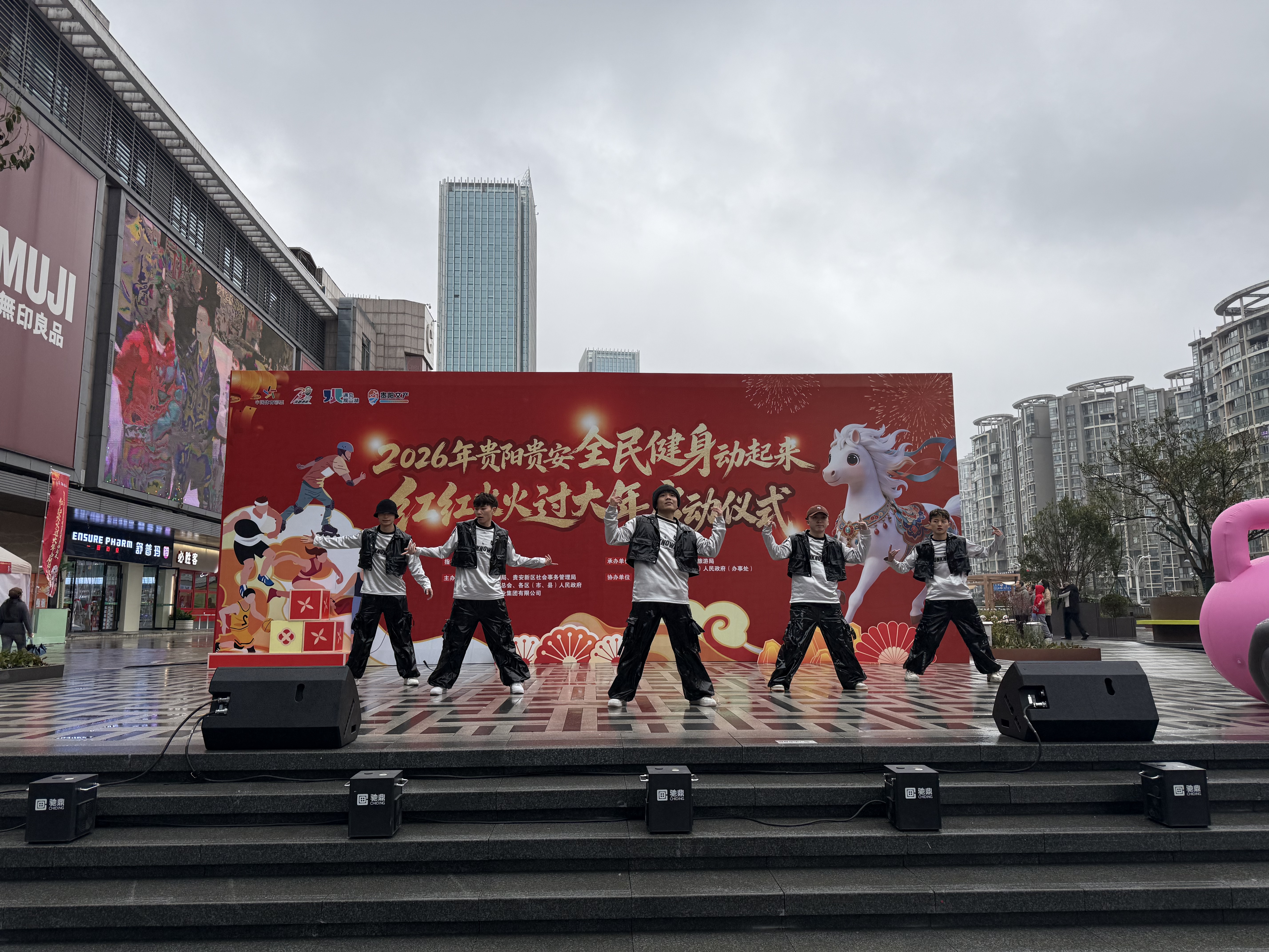 本次活动由贵州省体育局指导,贵阳市体育局、贵安新区社会事务管理局、贵阳市体育总会、贵阳文产集团等多部门联合主办。开幕式在啦啦操、舞狮、街舞等精彩表演中热烈开场。14时30分许,随着五彩地爆球与彩色气球腾空而起、冷焰火划破长空,为期多日的全民健身“红红火火过大年”系列活动正式启幕。