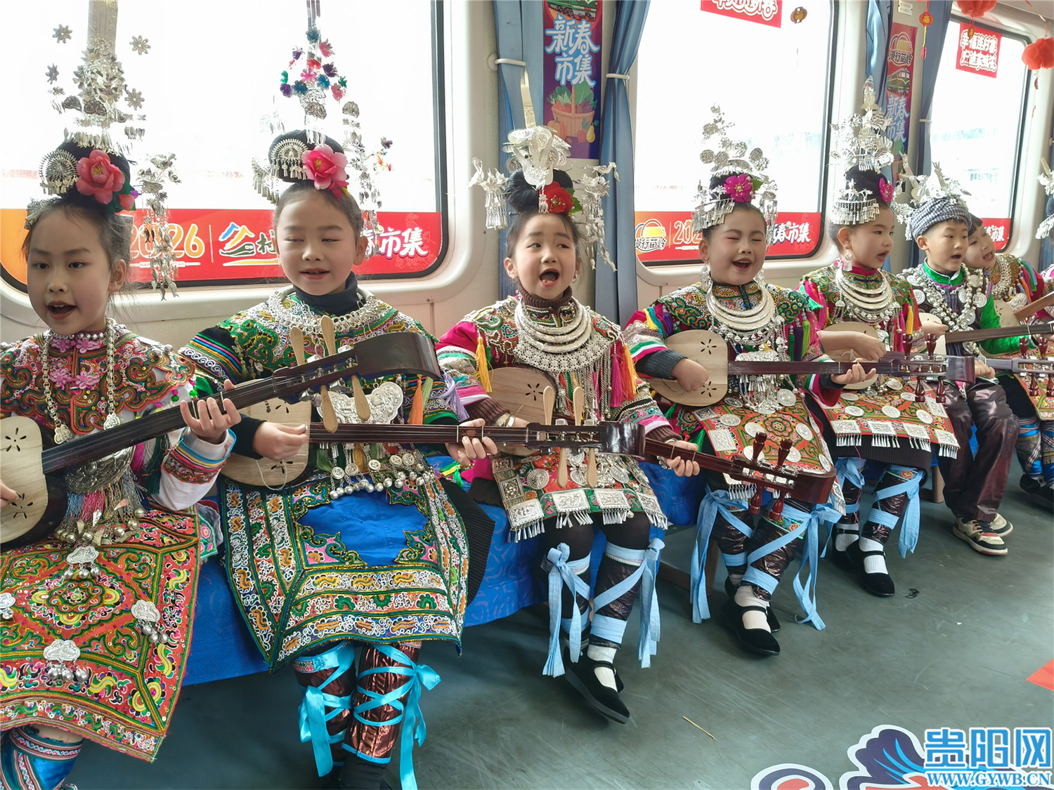 4号车厢成为流动展演厅,身着盛装的侗族小演员们献上侗族琵琶弹唱等节目,另有木叶独奏、笋笙表演、非遗技艺快闪……旅客们掌声不断,车厢里洋溢着欢声笑语。