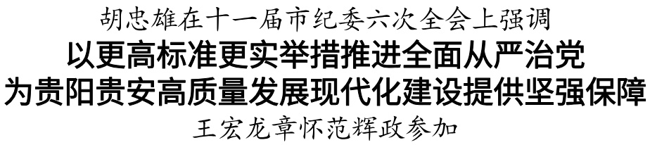 贵阳网·贵阳新闻讯 2月8日,十一届市纪委六次全会召开。省委常委、市委书记胡忠雄出席并讲话。他强调,要深入学习贯彻习近平总书记在二十届中央纪委五次全会上的重要讲话精神,进一步贯彻落实习近平总书记考察贵州重要讲话精神,落实十三届省纪委五次全会部署,以更高标准、更实举措推进全面从严治党,为贵阳贵安高质量发展、现代化建设提供坚强保障。