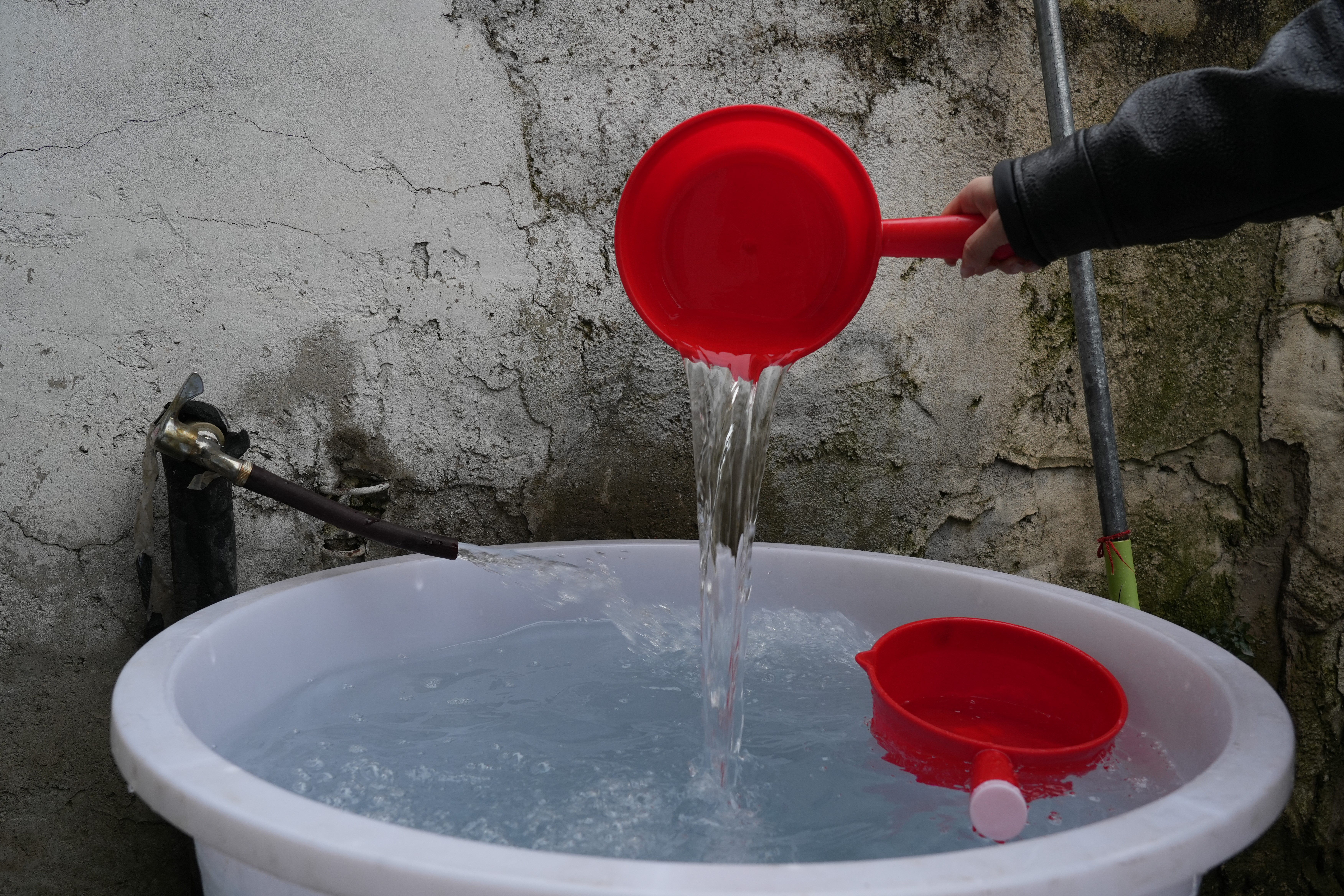 哗啦啦!大青村村民的蓄水桶。