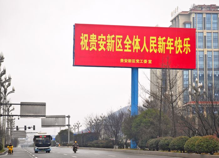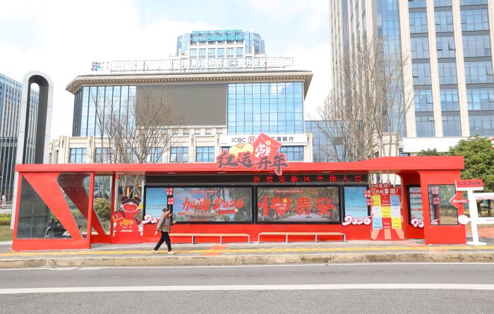 贵阳大数据科创城的公交站喜庆氛围
