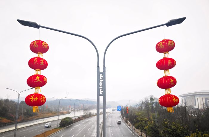 贵安综合保税区灯杆上的灯笼