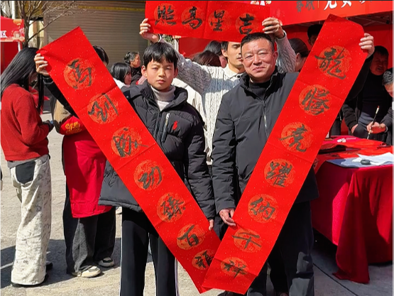打糍粑体验区热火朝天,特色农产品展销人头攒动,送春联、义务理发、拍摄全家福等公益服务摊位前排起长龙,温情与年味自午后弥漫不息。