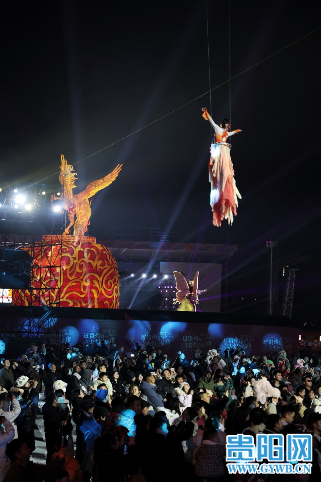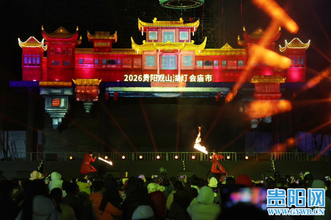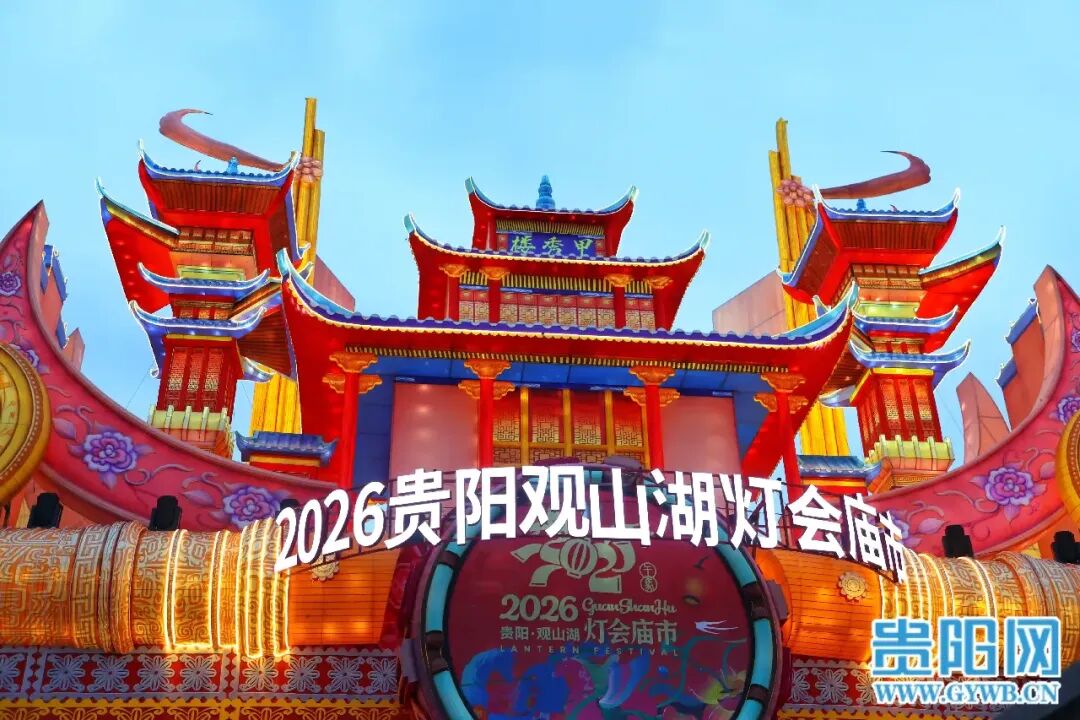 贵阳网·贵阳新闻讯 华灯初上,年味满城。2月10日晚,2026贵阳观山湖灯会庙市在观山湖公园民族大联欢广场正式亮灯启幕。 本届灯会庙市以绚丽灯组、民俗市集、特色演艺、互动体验为核心,将传统年味与现代光影完美融合。随着主灯璀璨点亮,大型灯组依次绽放,光影交织、流光溢彩,为贵阳市民与游客献上一场震撼的视觉盛宴。