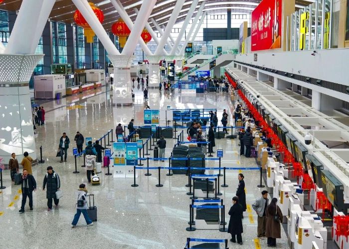 2月10日,贵阳龙洞堡国际机场航站楼内。