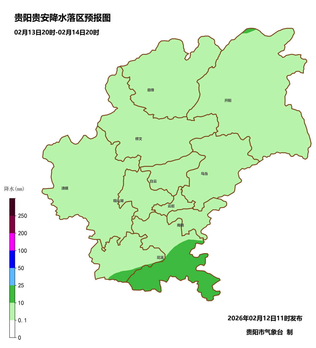 2月12日夜间到13日白天,小雨转阴天间多云,夜间局地有雾,主城区气温7~12℃;