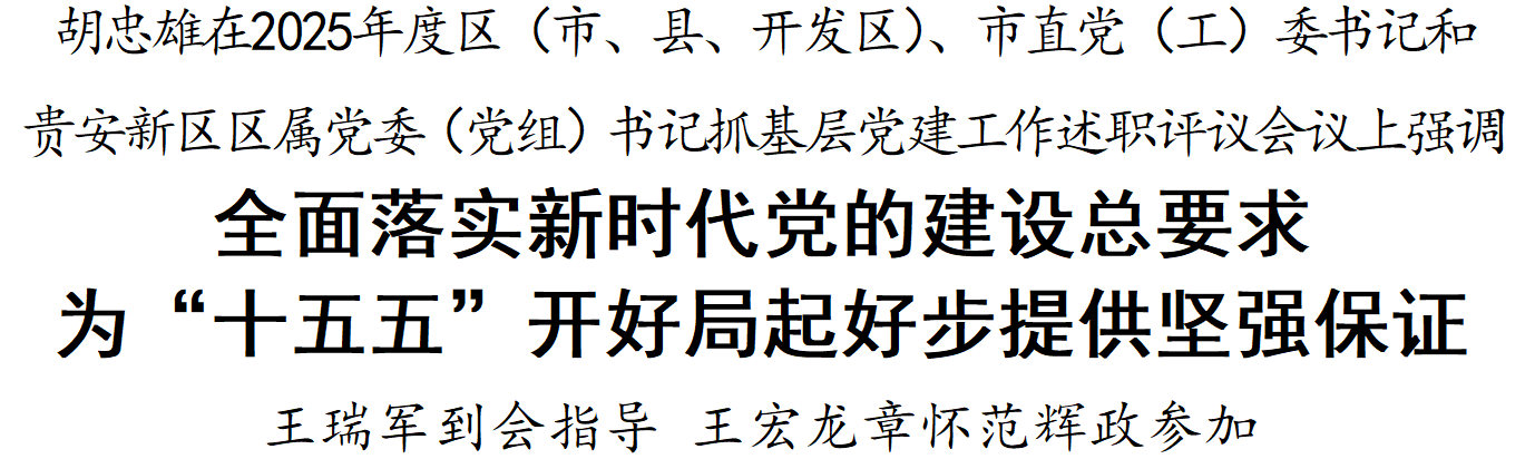 贵阳网·贵阳新闻讯 2月13日,2025年度区(市、县、开发区)、市直党(工)委书记和贵安新区区属党委(党组)书记抓基层党建工作述职评议会议召开。省委常委、市委书记胡忠雄主持会议并讲话。