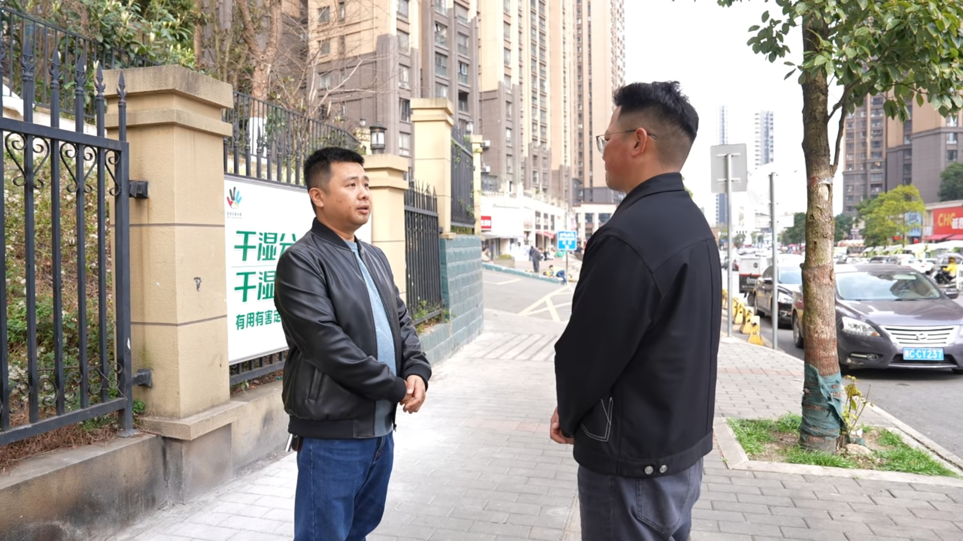 茶园路街道办事处城市管理办公室负责人冉杰冬(左)介绍相关情况。