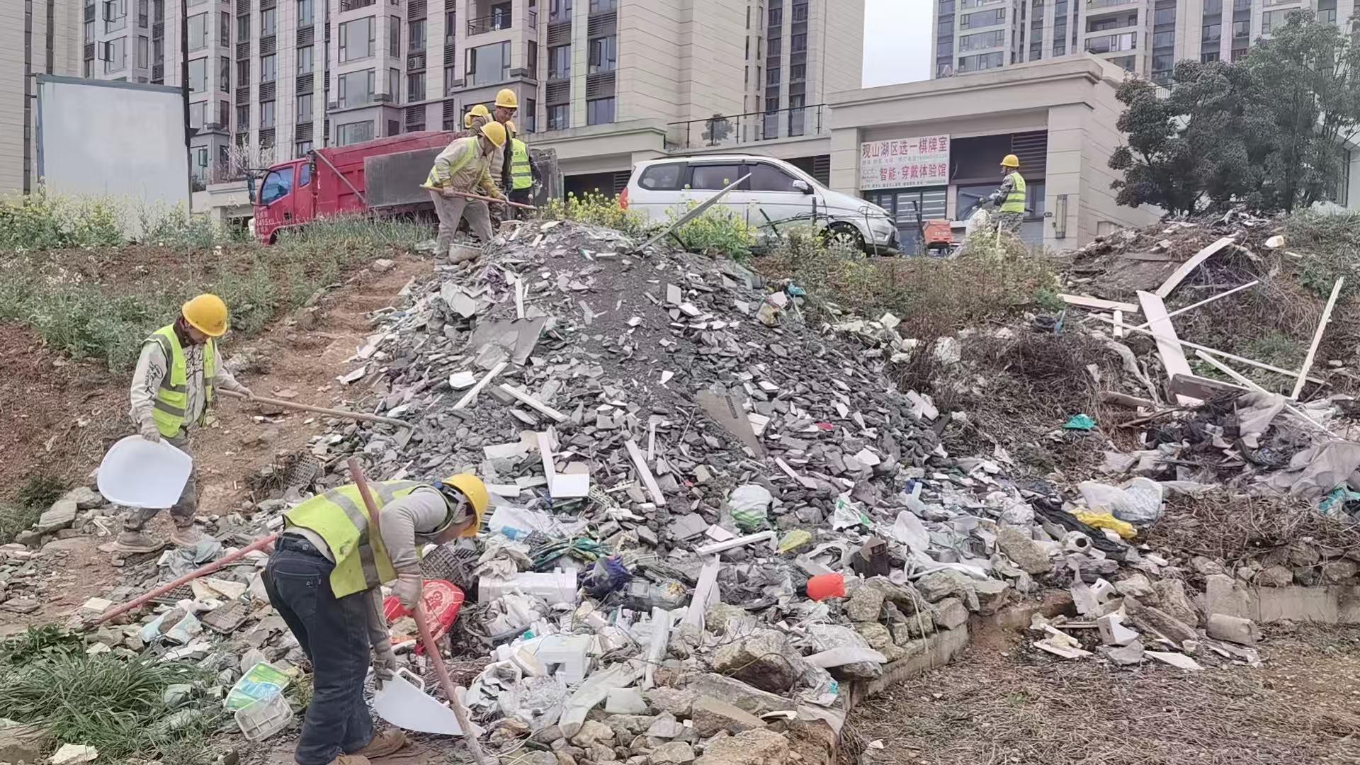 【部门回复】2月13日,观山湖区综合行政执法局回复市民:经现场核实,该处为已征未用空地,建筑垃圾主要来源于小区居民的装修活动。为尽快解决问题,我局已协调邻近项目的代建单位对该处建筑垃圾进行清理,预计在3月3日前清理完毕。同时,为了有效防止此类情况发生,为周围市民提供良好环境。我局将加强与街道办事处对接,要求物业做好监督管理工作,并在相应区域张贴公告,禁止向施工空地倾倒垃圾。市民如有疑问,可致电84850176进行咨询,我局工作人员将及时进行核实处理。
