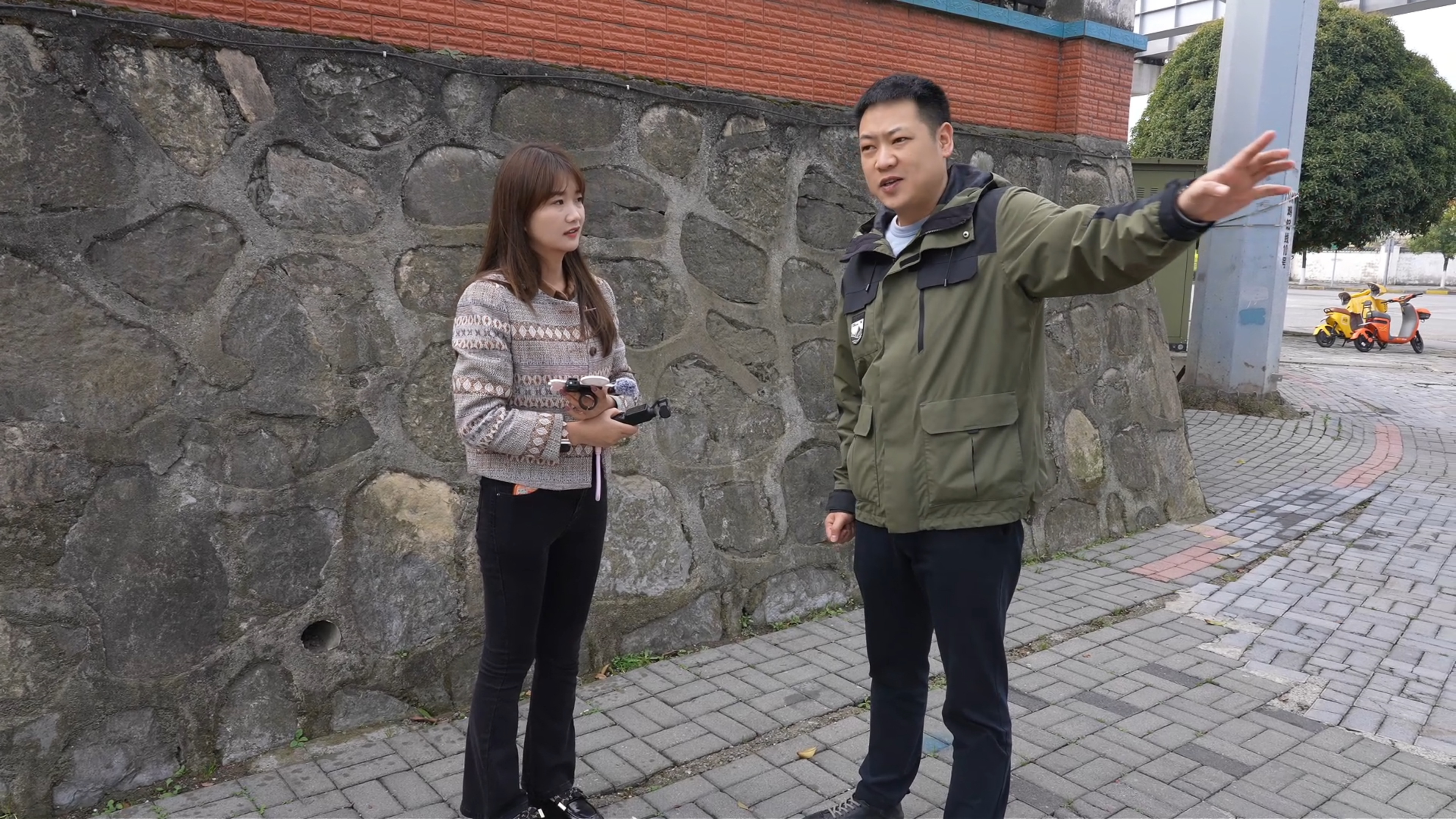 白云区市政维护管理所副所长罗健为(右)介绍云环东路情况。