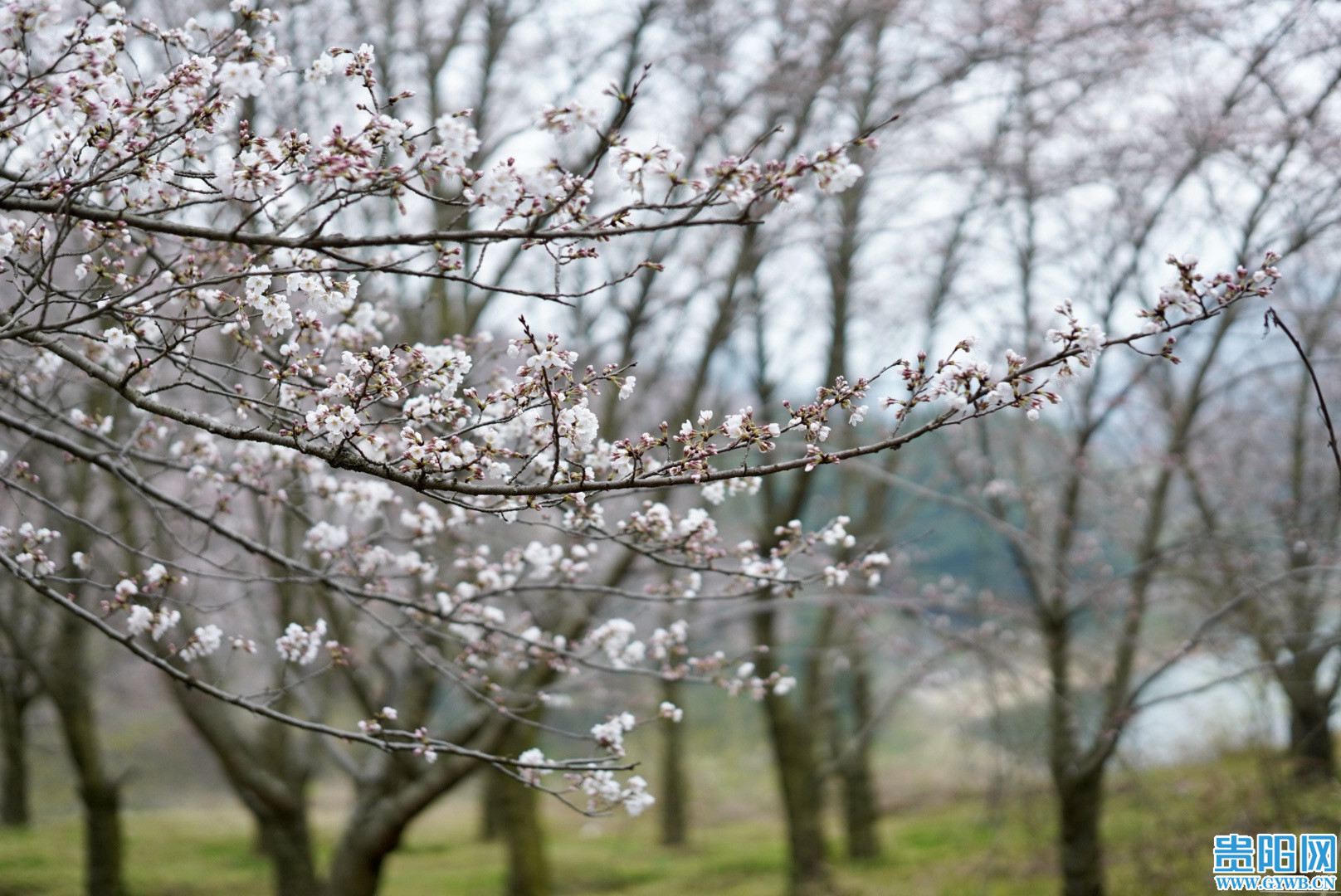 3月3日拍摄的贵安樱花园,枝头樱花正陆续绽放。图源/甲秀图库