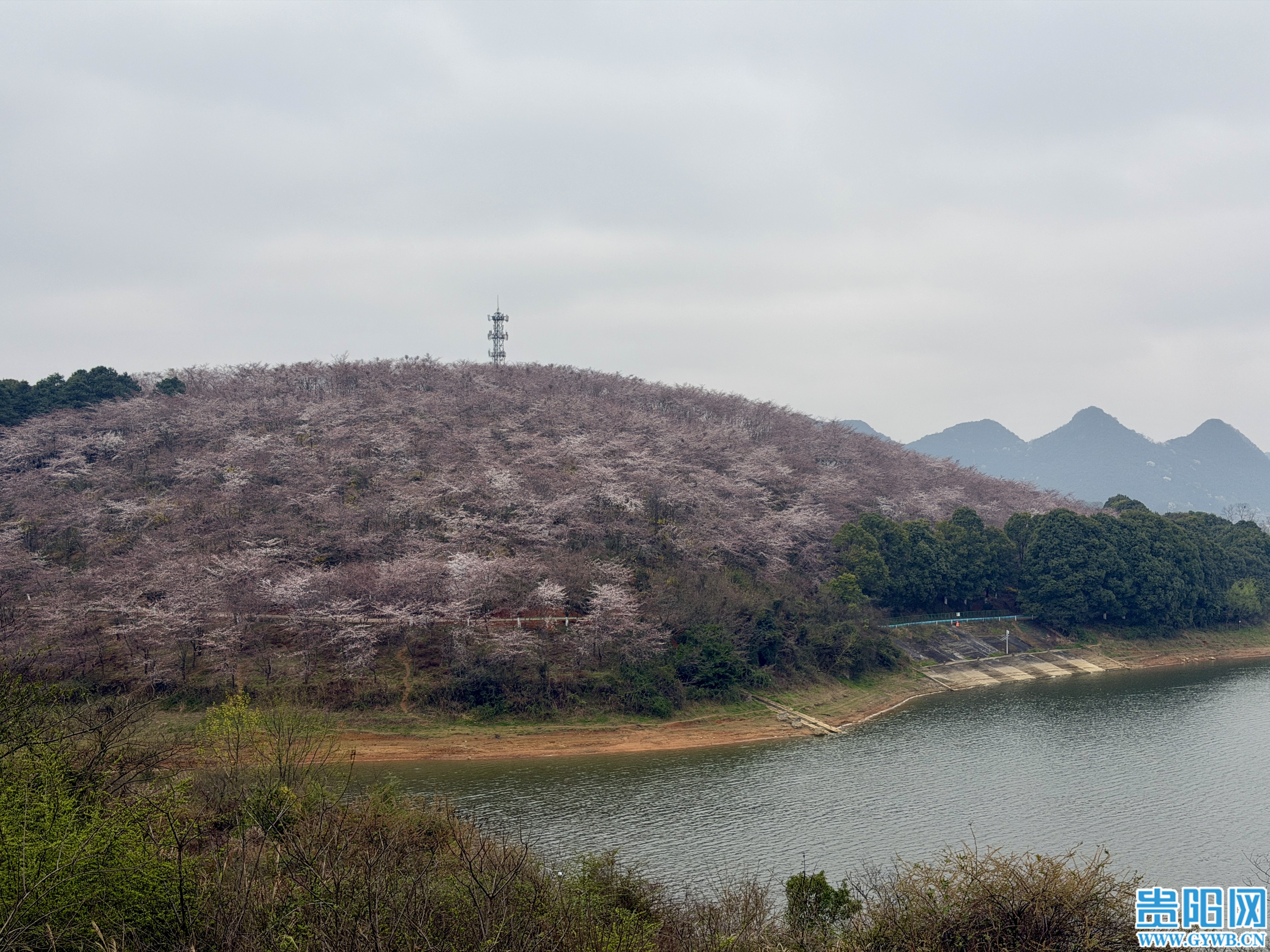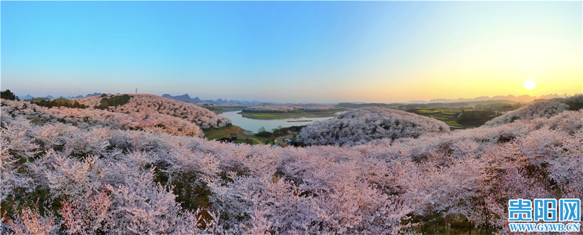 据介绍,贵安樱花园早已是全国乃至全球春季赏樱地图上一抹不可替代的惊艳地标。超2.4万亩70余万株的广阔樱林倚湖而生,既是大自然馈赠的生态瑰宝,更是贵阳贵安生态文明建设的生动缩影。贵安樱花园是一片苗圃基地,2015年春天偶然被摄影爱好者的航拍镜头发现,自此开启一路惊艳、一路芳华。早在2018年,贵安樱花园就有单日入园人数超10万人的记录,不仅成为全网追捧的网红打卡地,更多次获外交部发言人倾情推介,被英国BBC等国际媒体聚焦报道,被誉为“蓝色星球上最美樱花园”。黔中秘境一跃成为享誉全国、蜚声国际的文旅地标,成为贵阳贵安最动人的生态名片、文旅名片、城市名片。