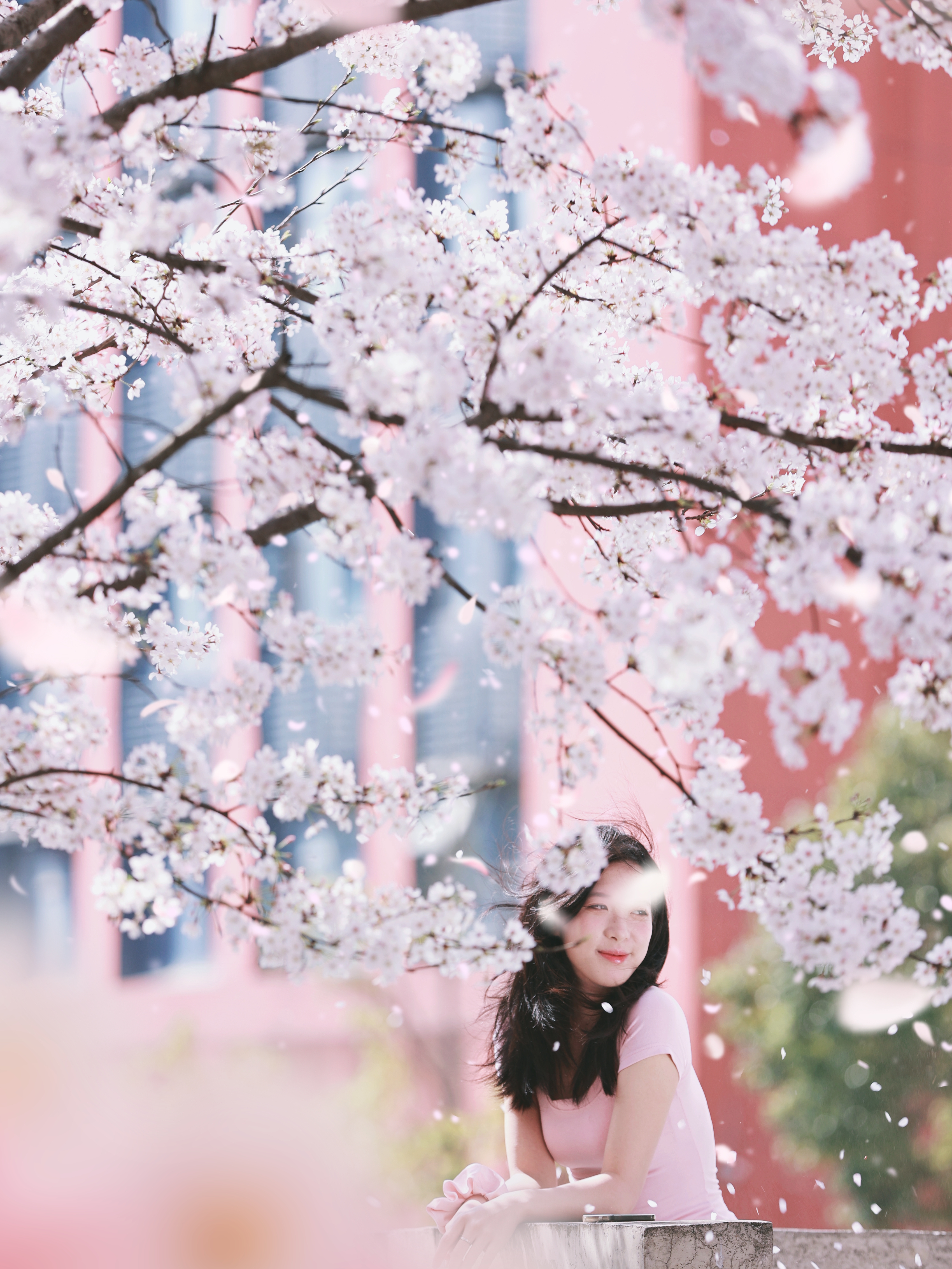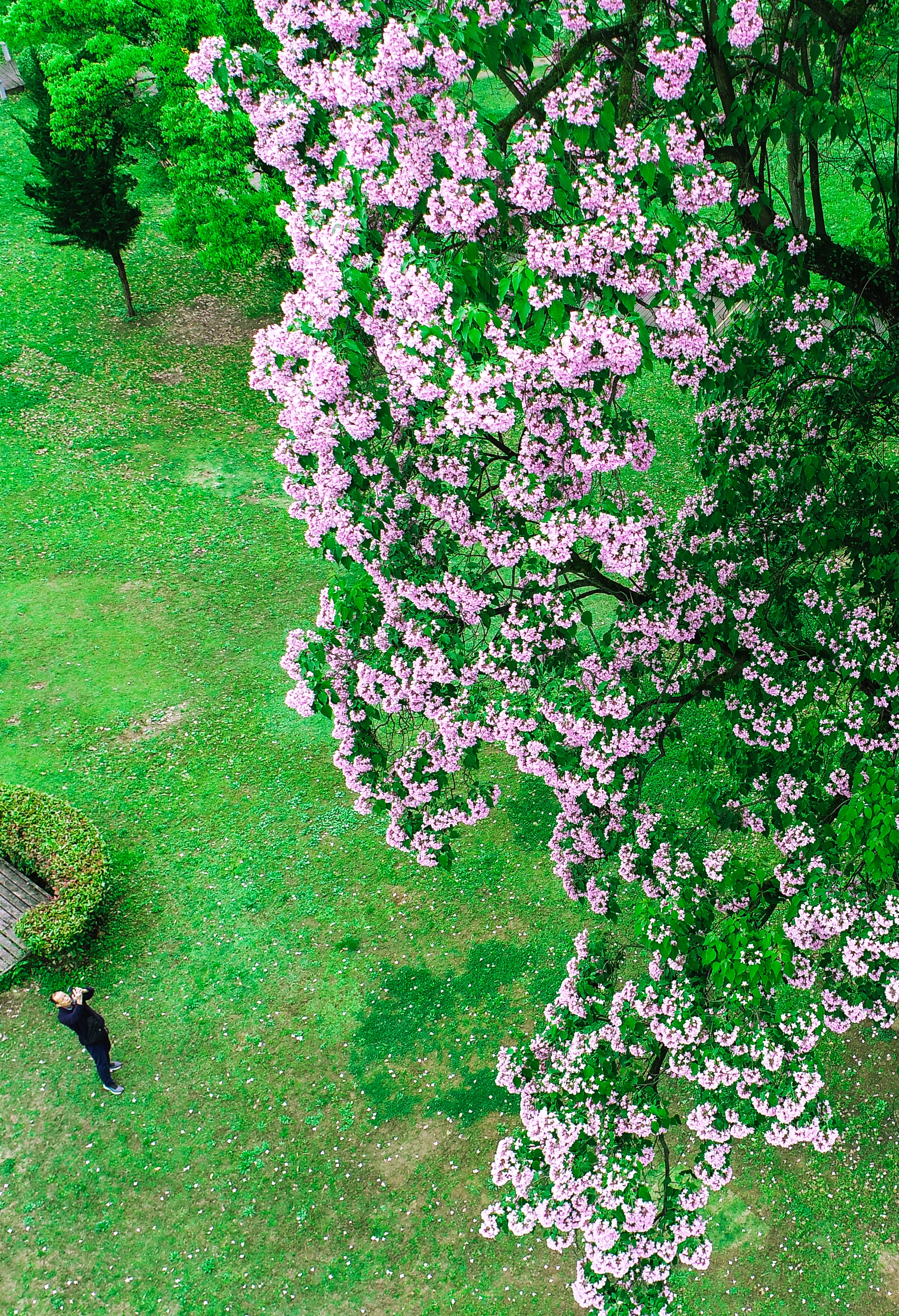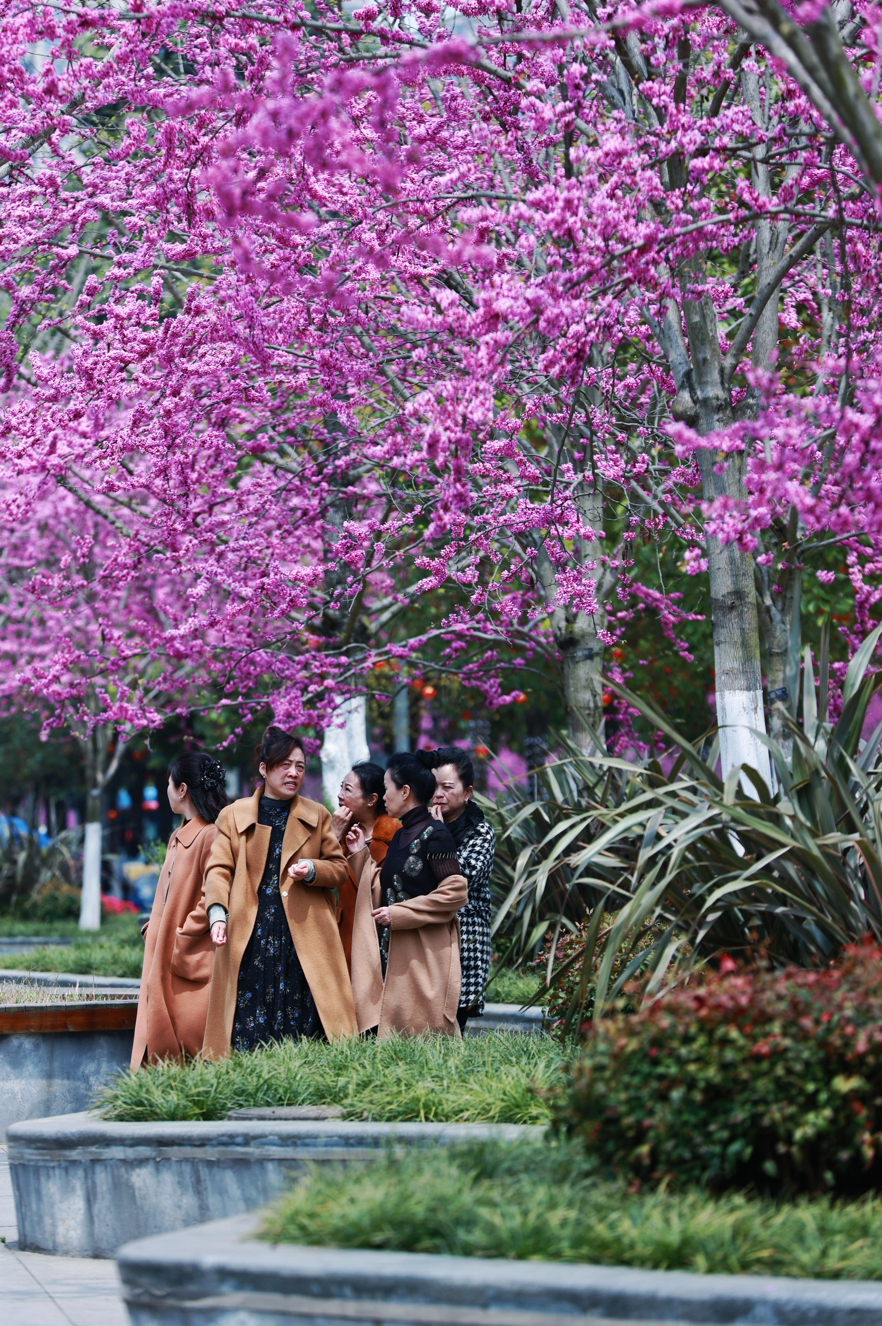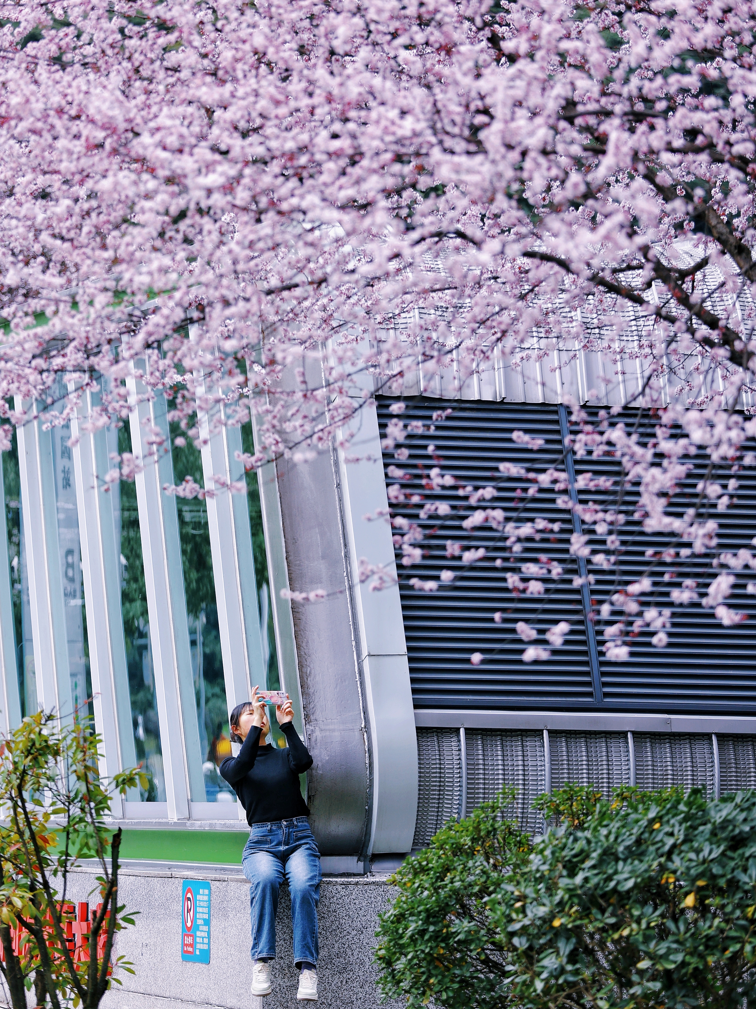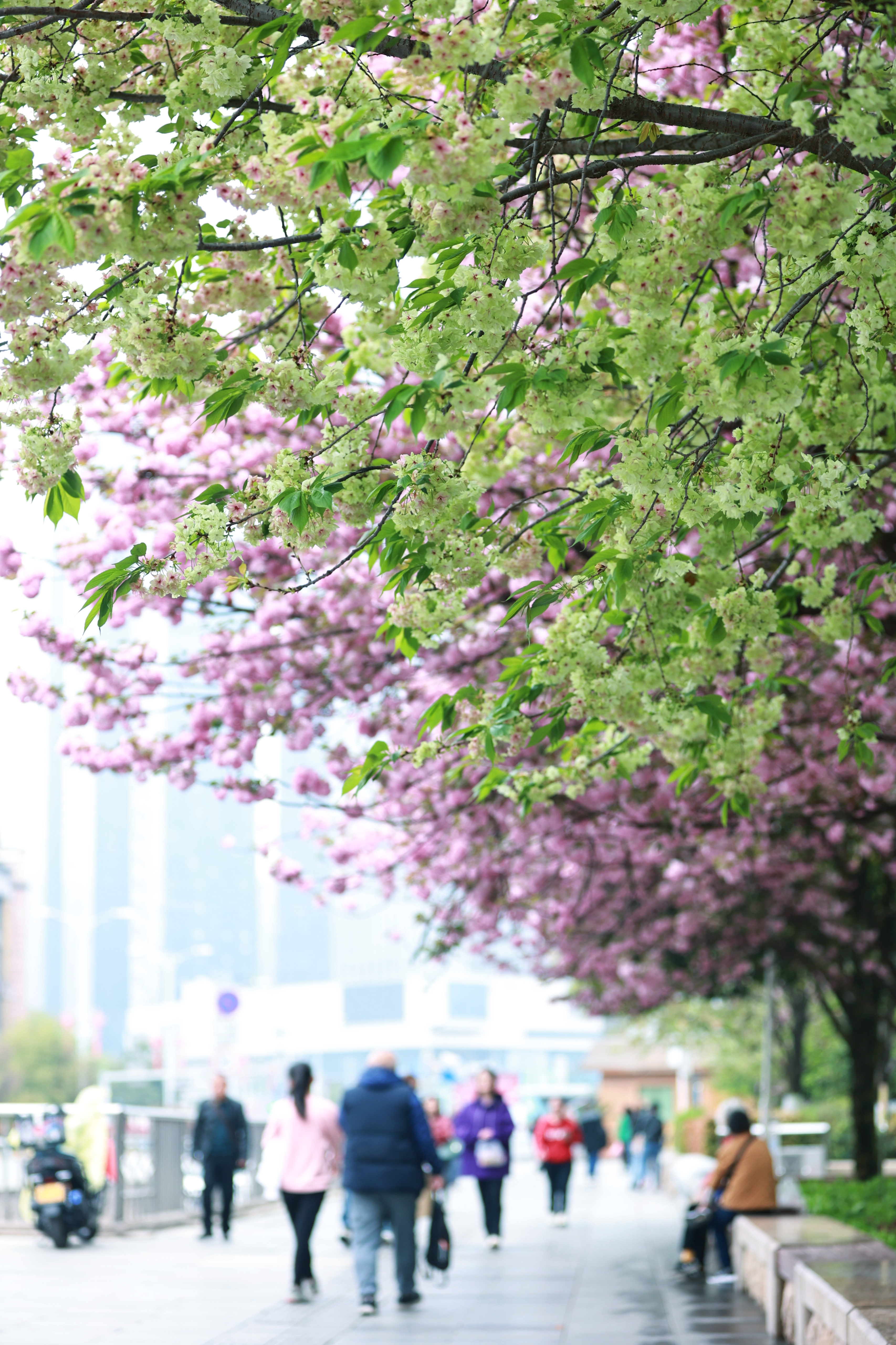▲筑城广场上稀缺的绿樱与红缨形成醉美风景线