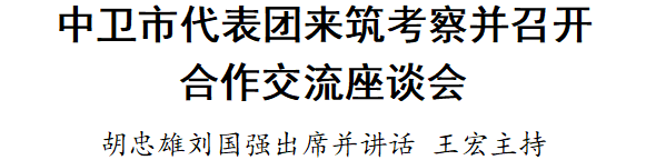 贵阳网·贵阳新闻讯 3月5日至6日,中卫市代表团来筑考察。3月6日,两地召开合作交流座谈会。省委常委、市委书记胡忠雄,中卫市委书记、市人大常委会党组书记刘国强出席并讲话。