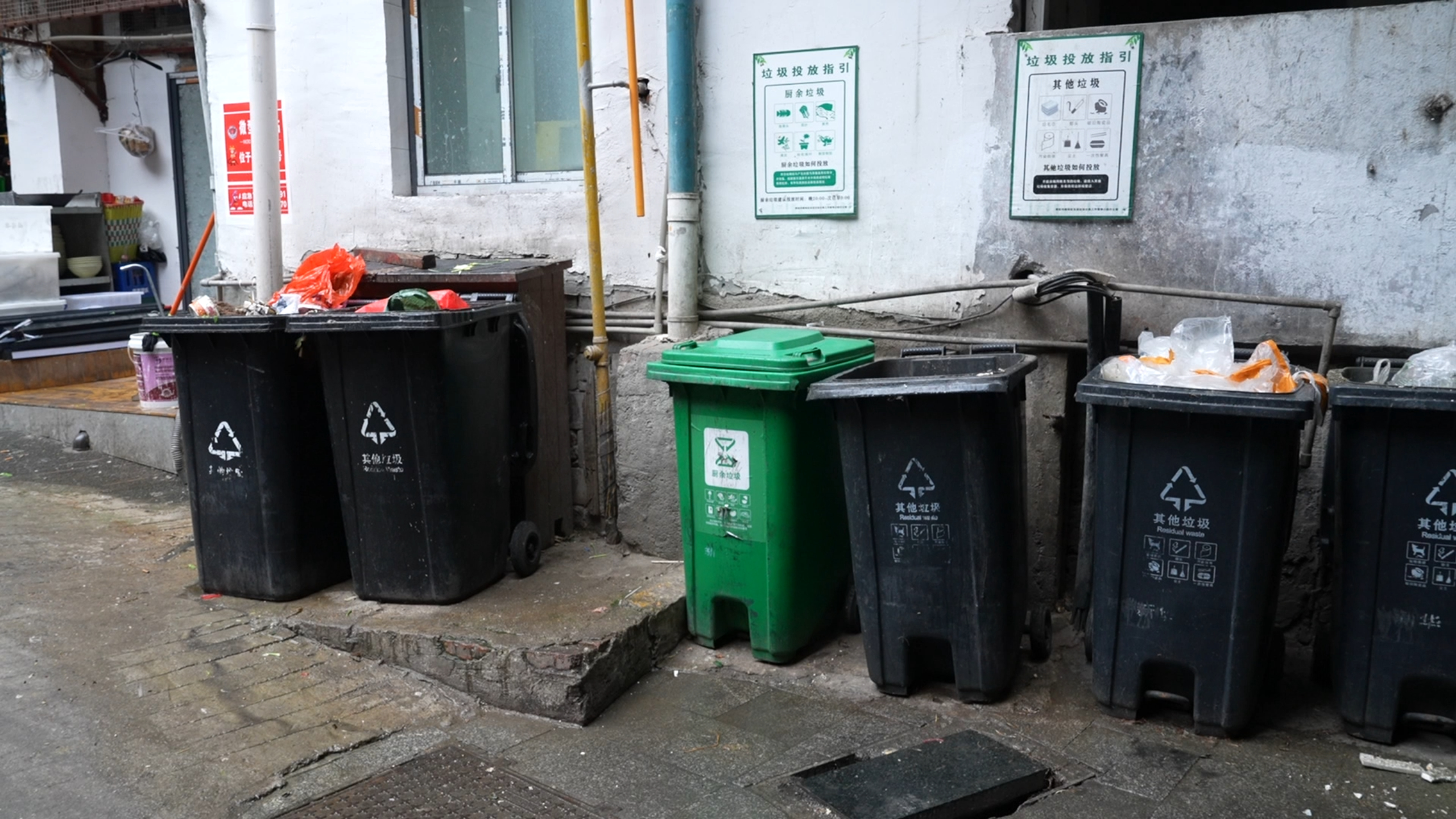 “融媒+督查”工作组在现场看到,小区内一处下水道井盖边渗出粪便和污水,空气中弥漫着异味。拐角处摆放的6个垃圾桶虽未满溢,但地面留有污水痕迹。居民反映,一到下午垃圾便会堆满甚至散落在地。