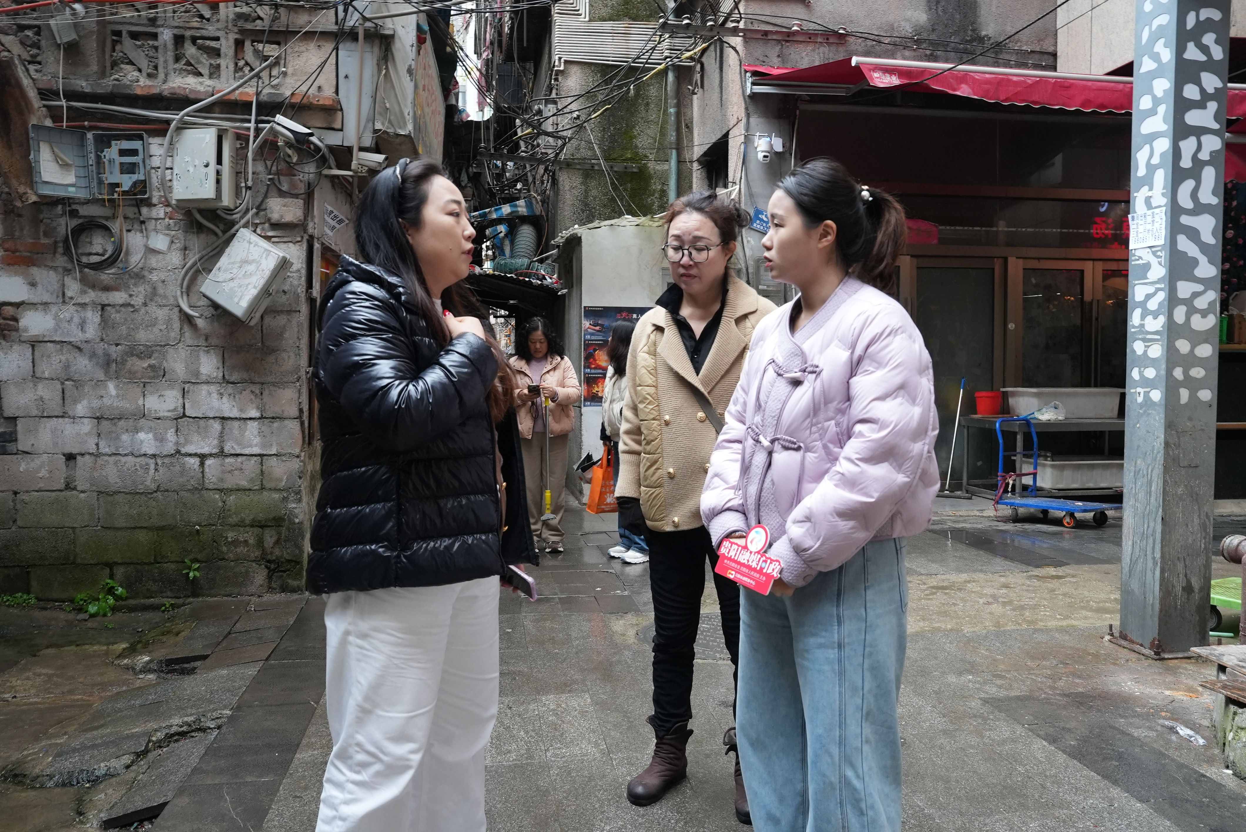 神奇路社区居委穆颖梅(左)解答工作组疑问。